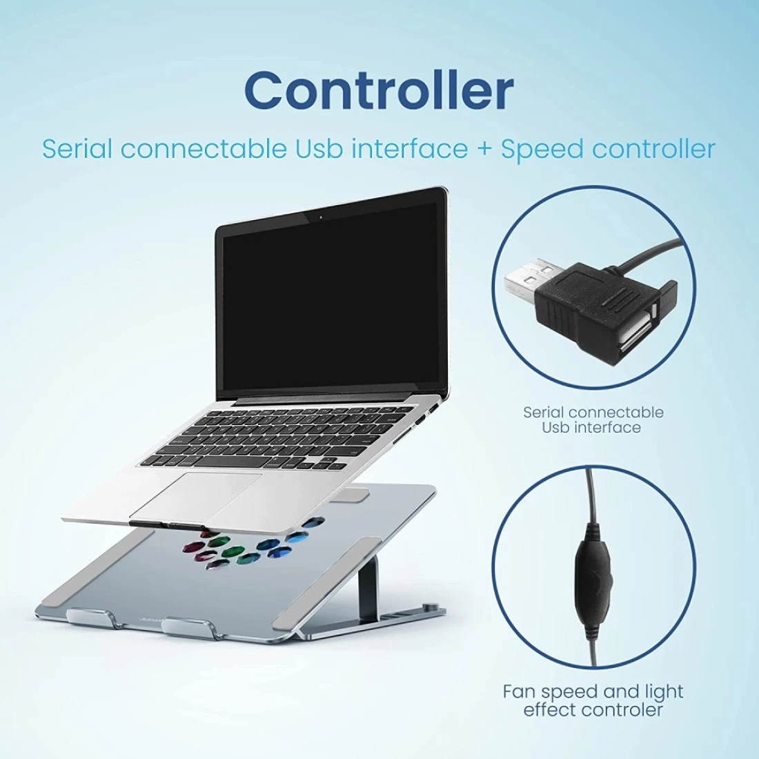 Remson Adjustable Cooling Laptop Stand with RGB Fan, Aluminum Alloy Laptop Holder Compatible for MacBook 12/13, MacBook Pro 13/15, MacBook Air 13, Lenovo, HP, Dell, Samsung and Laptops from 13" - 17"…