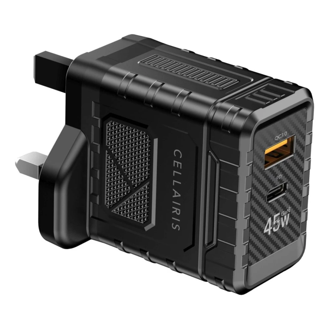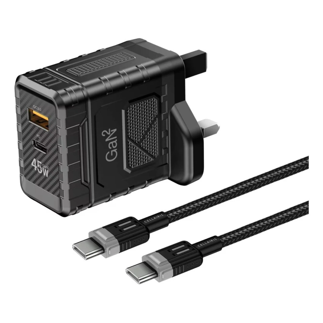 سيلايريز شاحن غان 2 بيدي باللون الأسود بقدرة 45 وات مع كابل شحن باللون الأسود بقدرة 60 وات