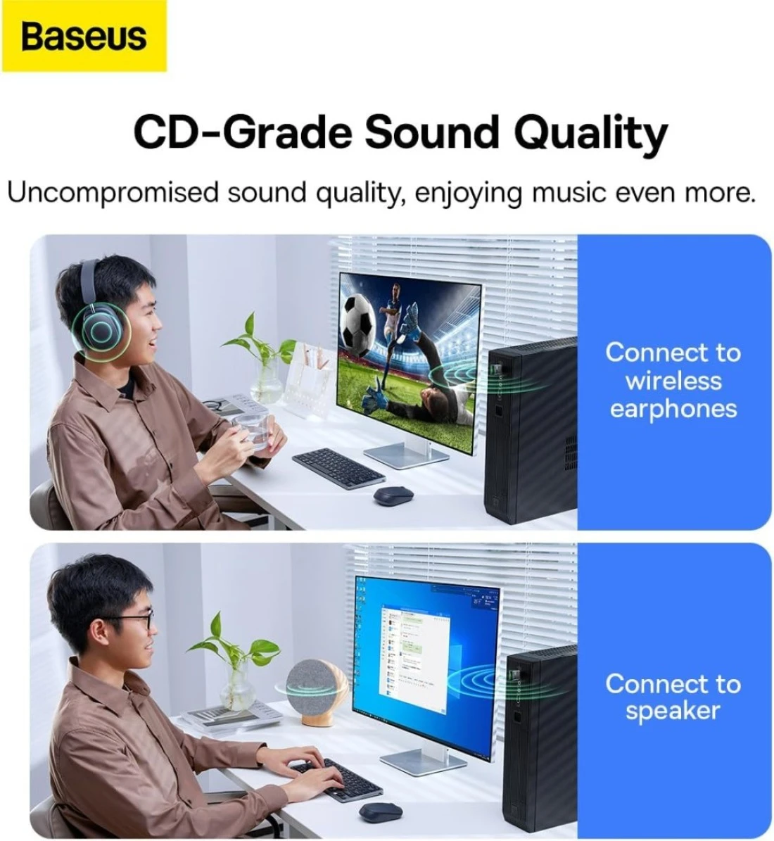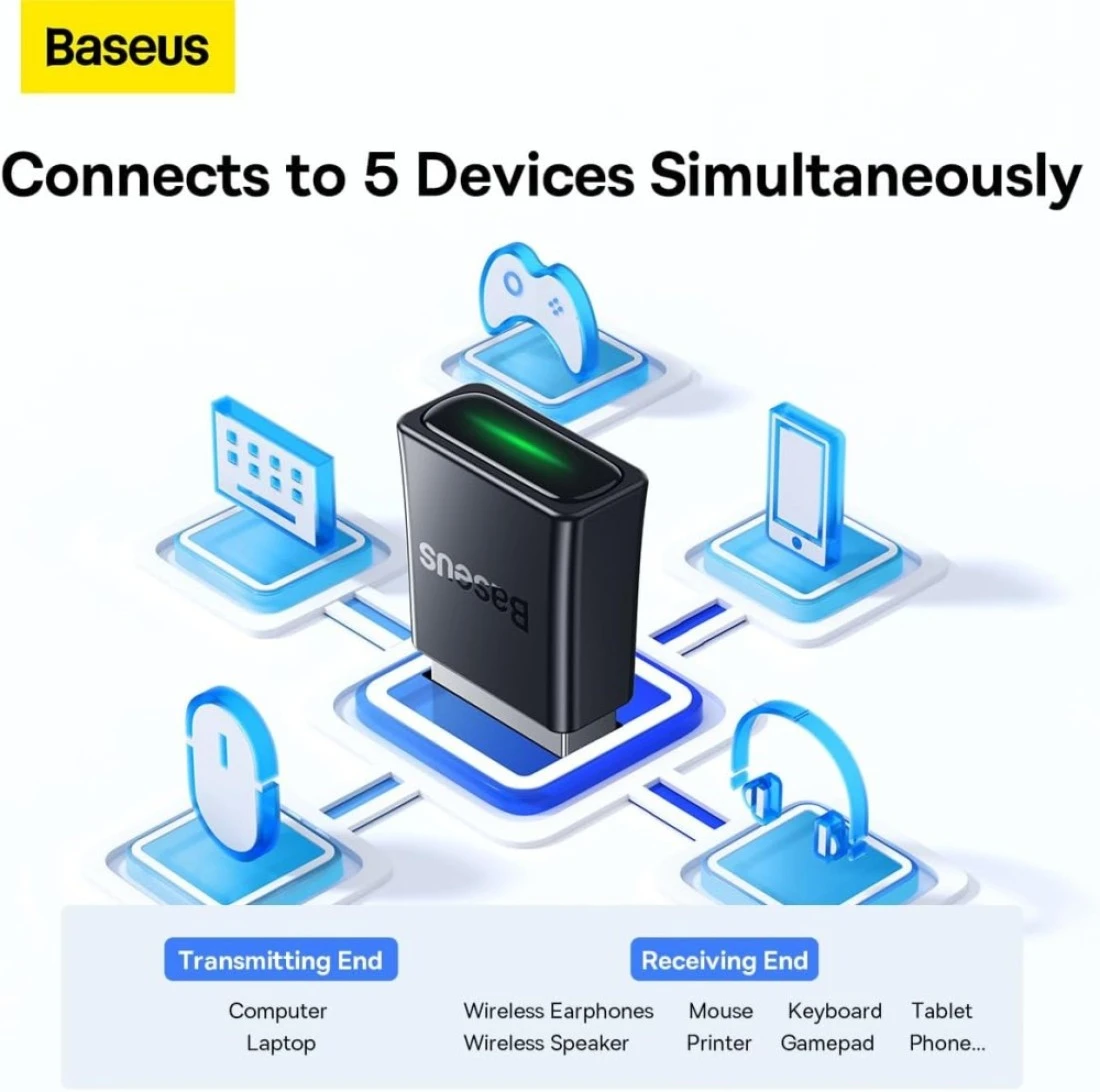 Baseus Bluetooth Adapter 5.3【Plug & Play】USB Bluetooth Adapter for PC Bluetooth Dongle Adapter 20M Wide Range USB Bluetooth Receiver for Mouse Keyboard Headphone Speaker Compatible with Win 11/10/8.1