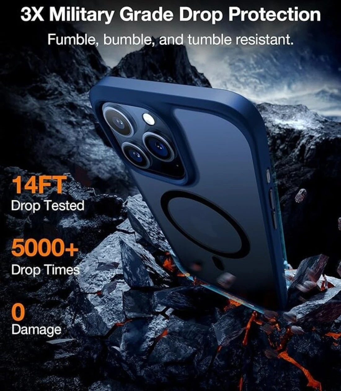 TORRAS Magnetic Shockproof For iPhone 15 Pro Case, [Military-Grade Drop Tested] [Compatible With MagSafe] Translucent Slim Protective Anti-Scratch Anti-Fingerprint Guardian Mag 2023, Blue Titanium