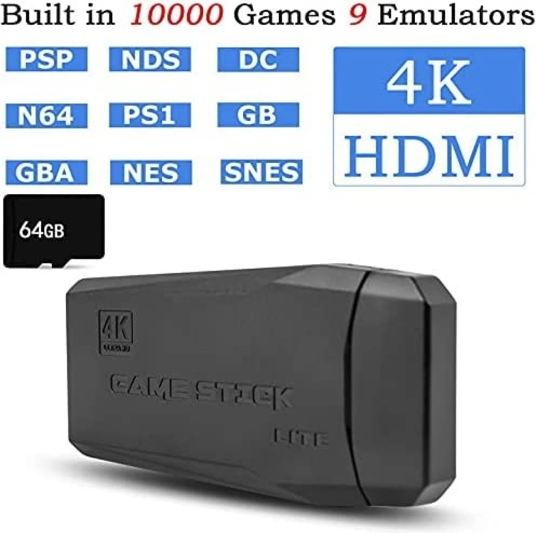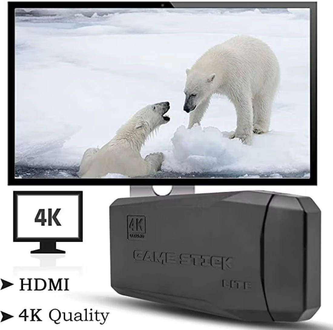 2.4G Wireless Controller Gamepad Console Stick Plug and Play Video Game Stick with 10000+ Games 9 Classic Emulators 4K High Definition HDMI Output for TV with Dual 2.4G Wireless Controllers