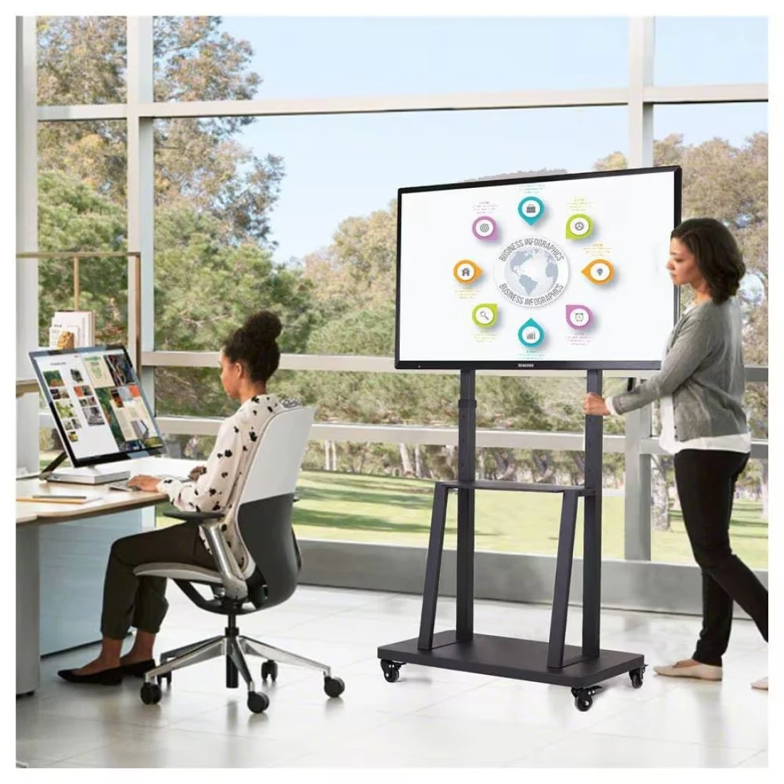 TV Stand with Wheels: Mobile TV Trolley with Mount For 32-80 Inch LED LCD Oled Flat Curved Screen Floor TV Cart Portable Rolling TV Monitor Shelf with Heavy Duty Base Max VESA 600x400MM