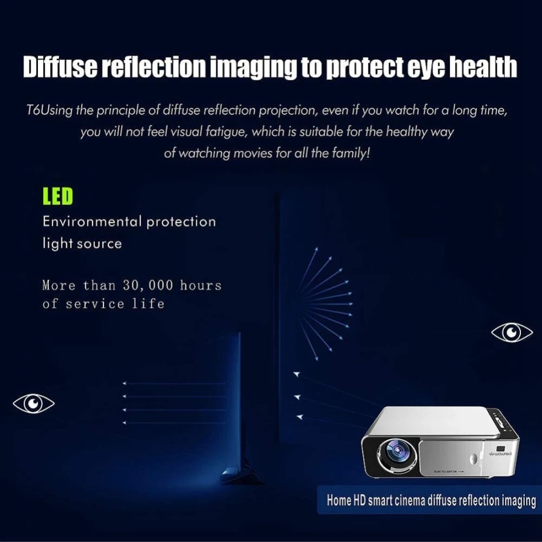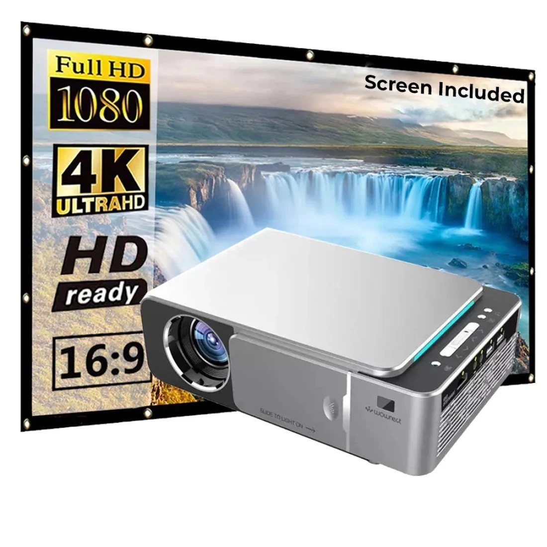 Wownect T6 Wifi LED Projector Wireless With 100" 4K Screen, 3500 Lumens [ Wireless Mobile Cast ] Home Theater Outdoor Gaming Projector HD 1080P, Upto 200'' Screen Size