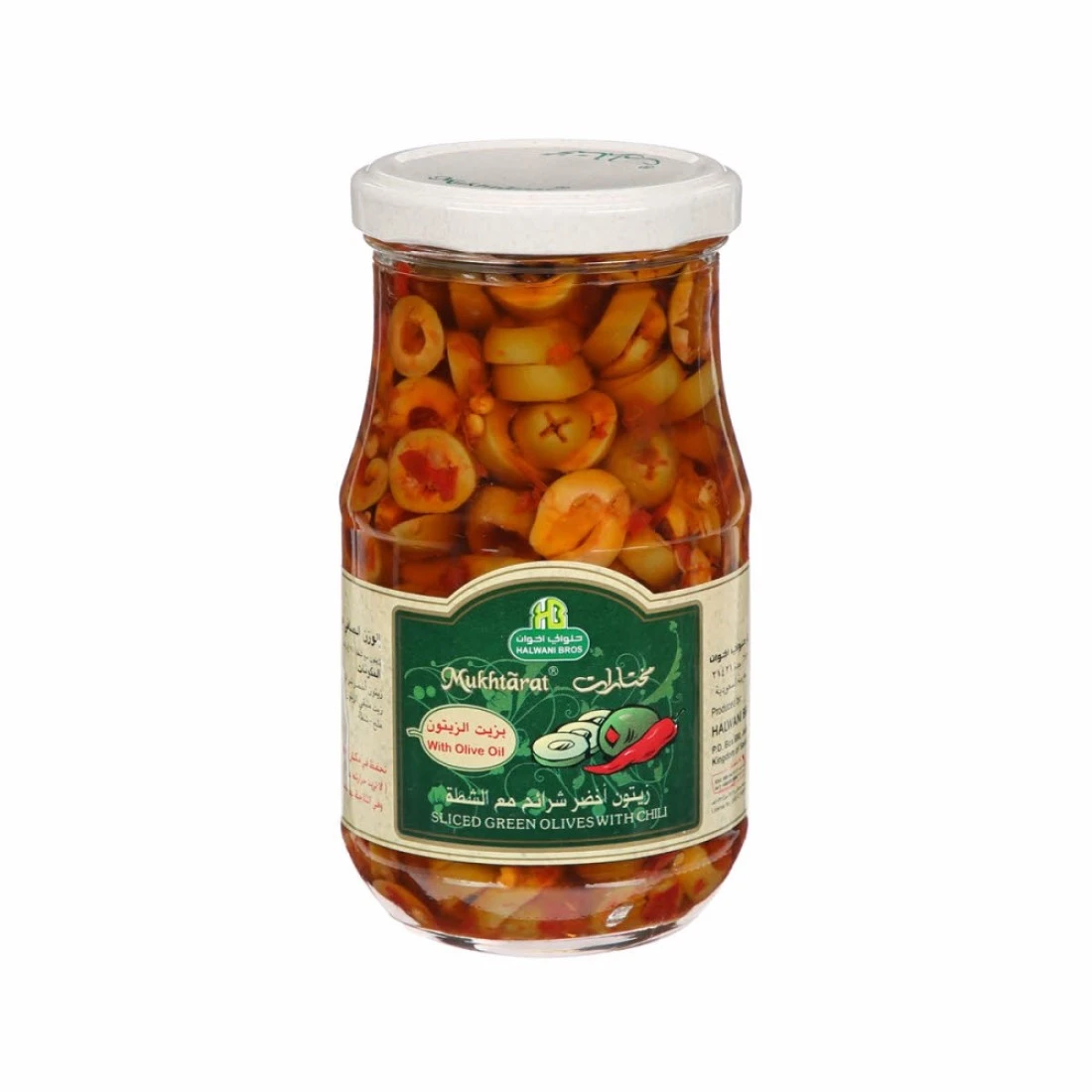 زيتون أخضر مقطع مع الفلفل الحار من الحلواني 325 غرام