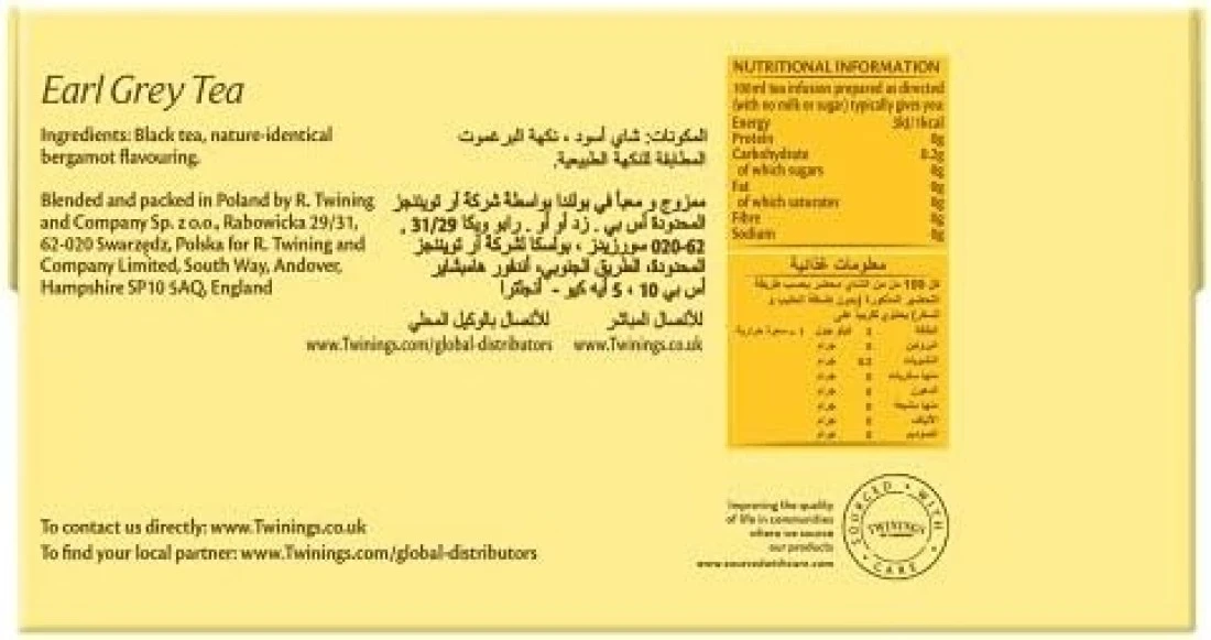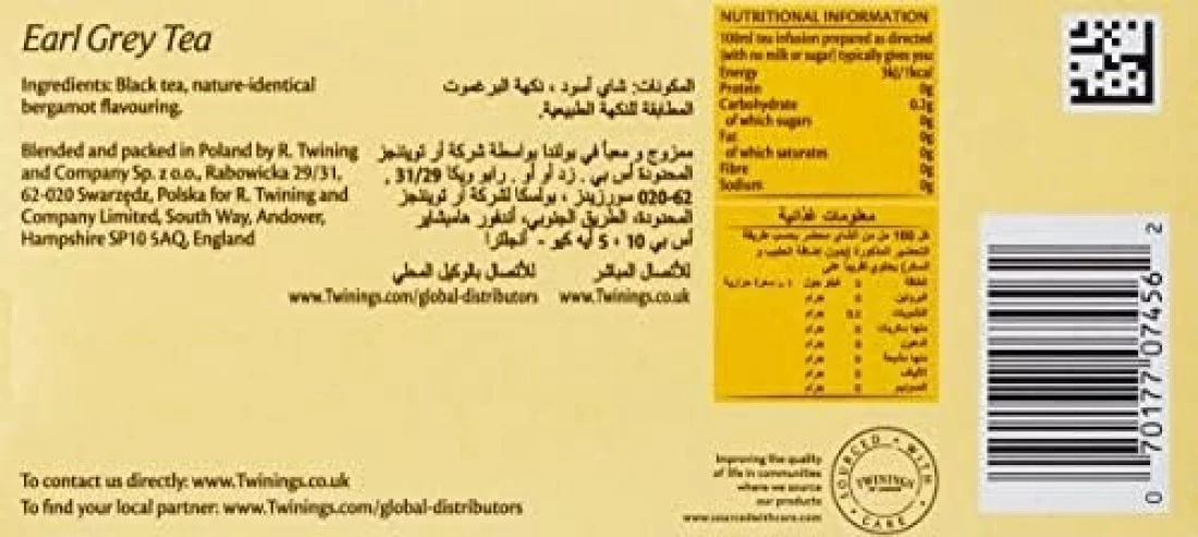 صندوق شاي اسود اكياس من تويتتينجز بنكهة البرغموت - 25 كيس