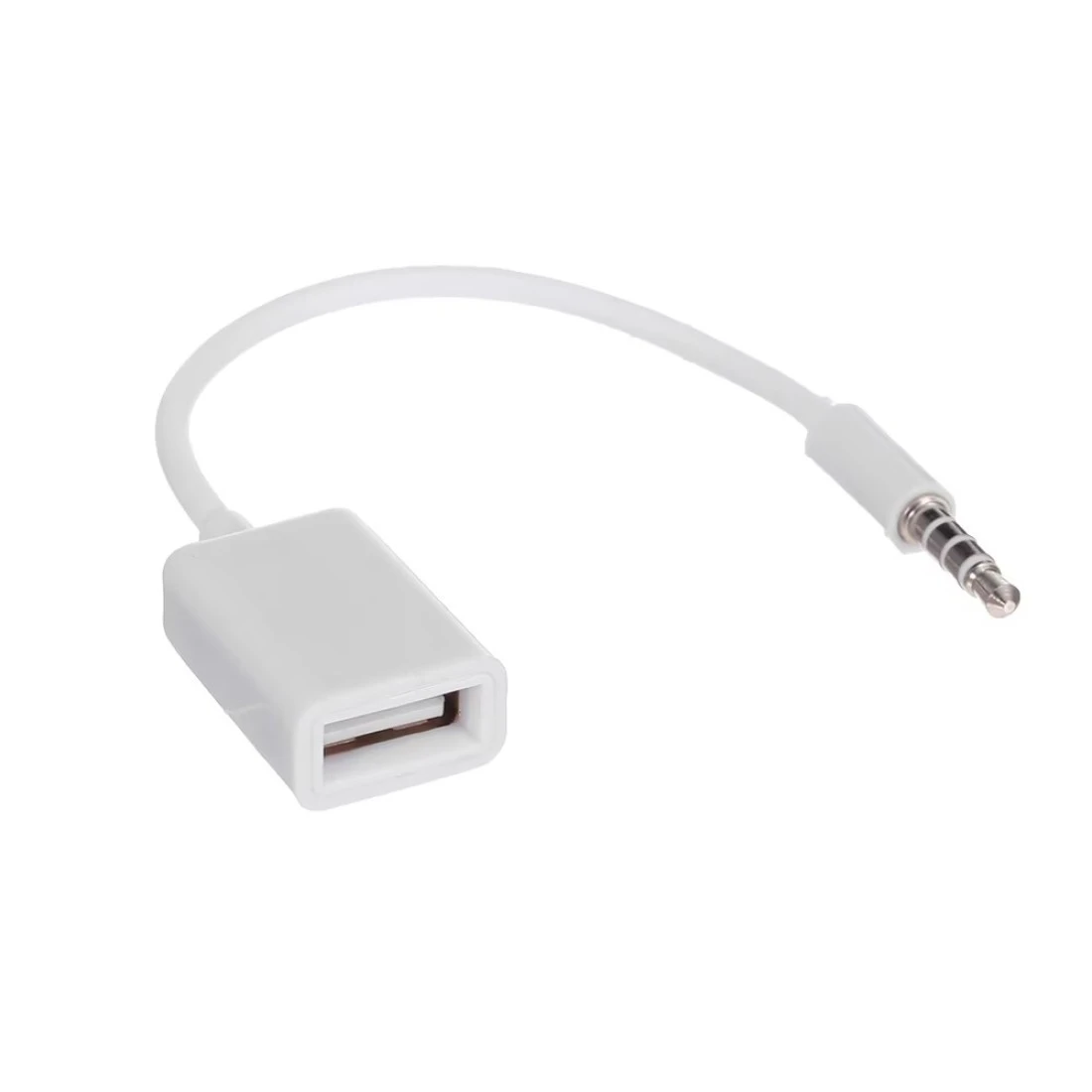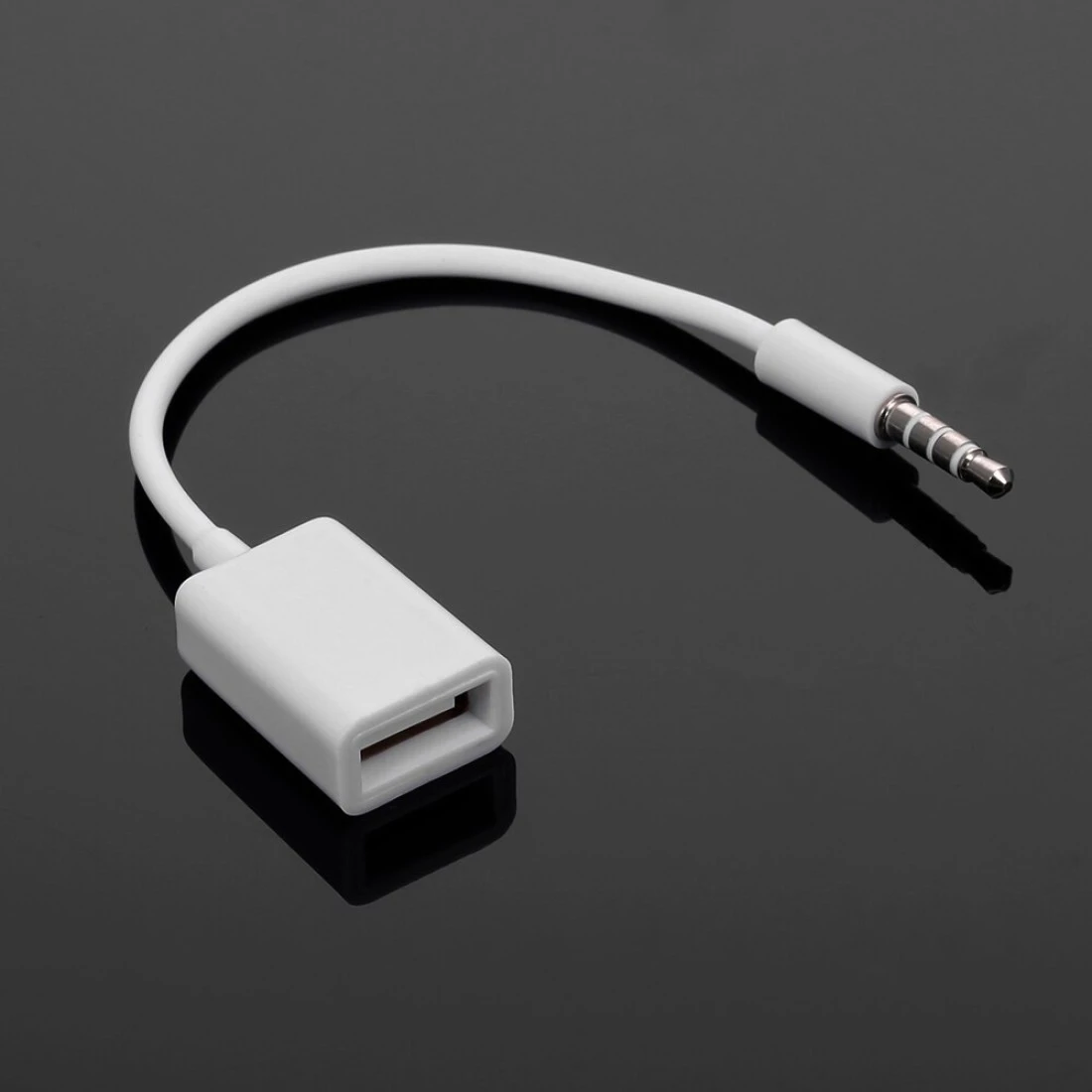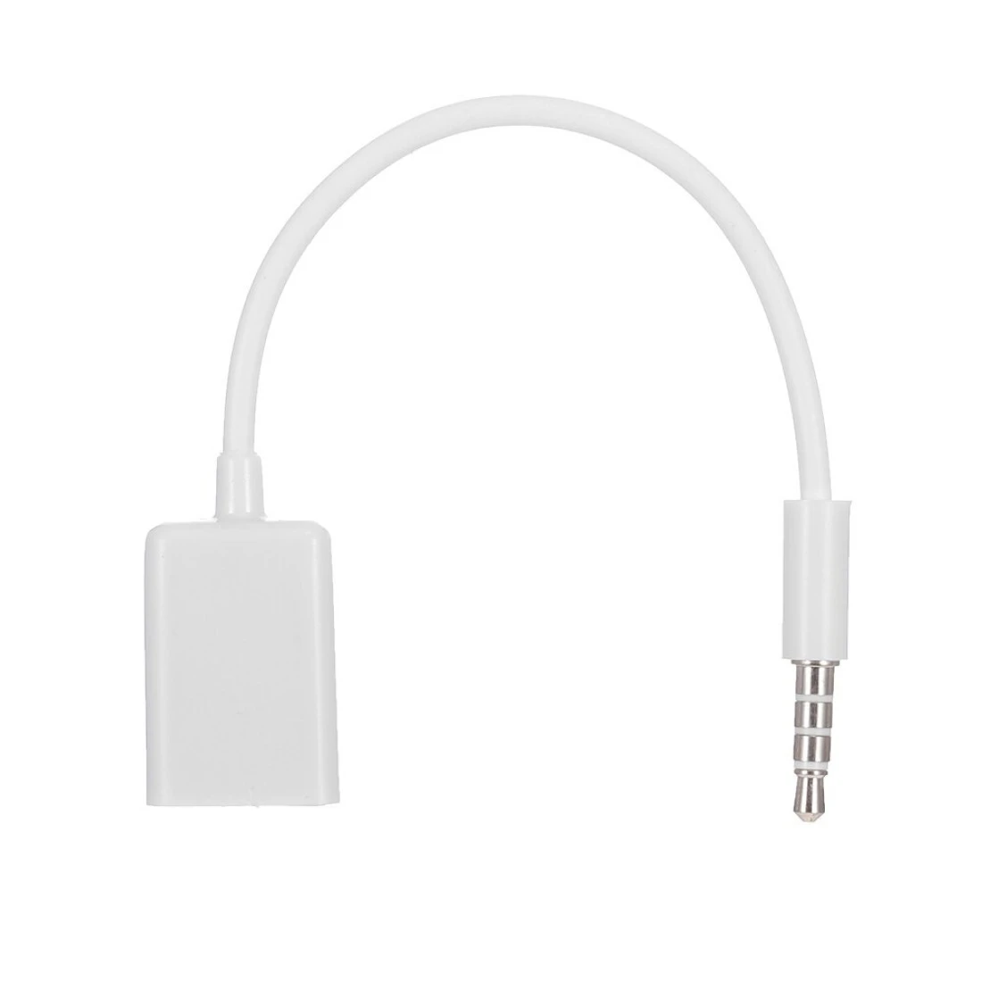 عام-3.5mm سيارة ذكر AUX الصوت جاك إلى USB 2.0 أنثى محول محول الحبل OTG كابل (الابيض)