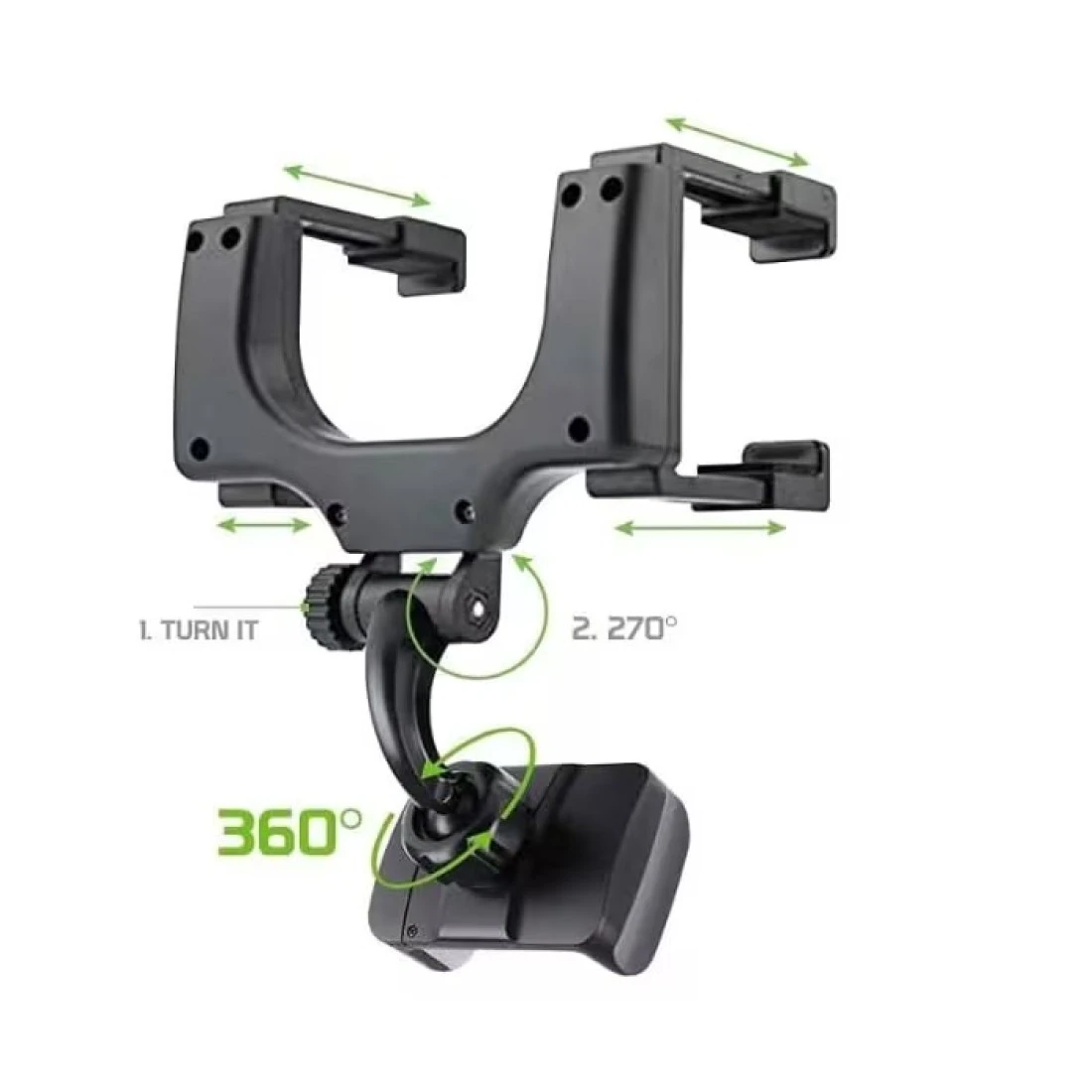حامل هاتف بمرآة الرؤية الخلفية للسيارة، يدور 360 درجة، حامل متعدد الوظائف للهاتف وحامل GPS حامل هاتف السيارة العالمي لجميع الهواتف الذكية