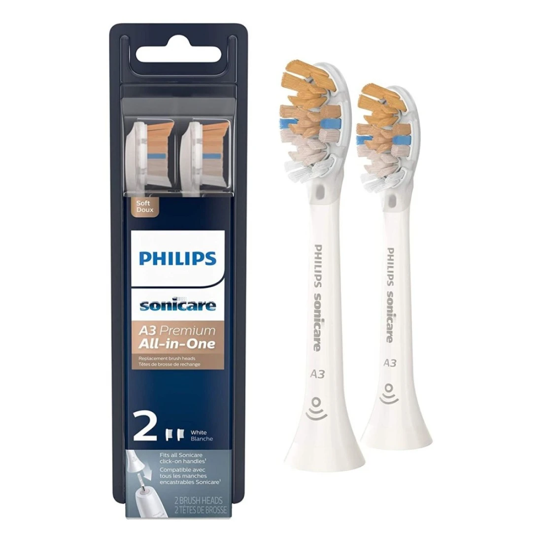 فيليبس آي 3 بريميوم سونيك الكل في واحد HX9092 رؤوس بديلة لفرشاة الأسنان بقياس موحد 2 قطع - أبيض