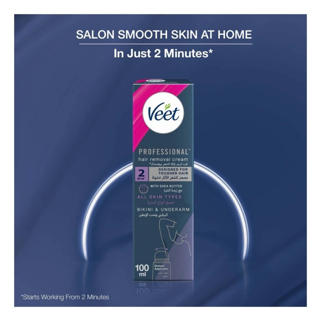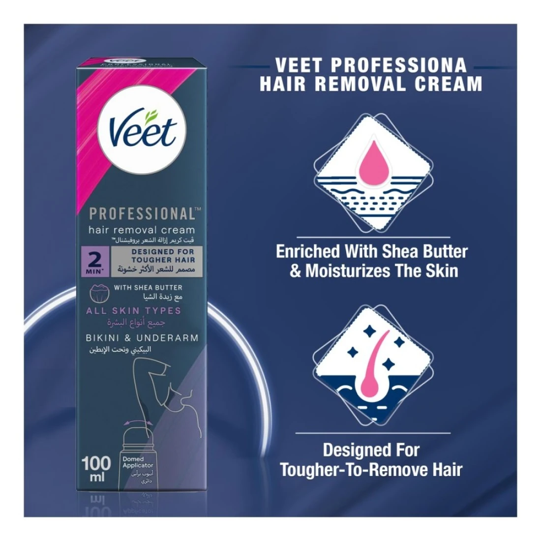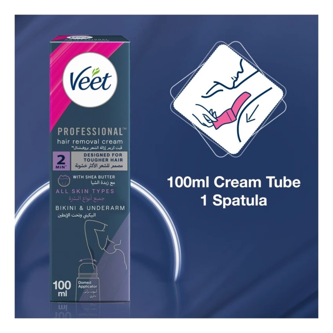 فيت بروفيشنال كريم إزالة الشعر في دقيقتين لمنطقة البيكيني وتحت الإبط مع زبدة الشيا لجميع أنواع البشرة 100 ملل