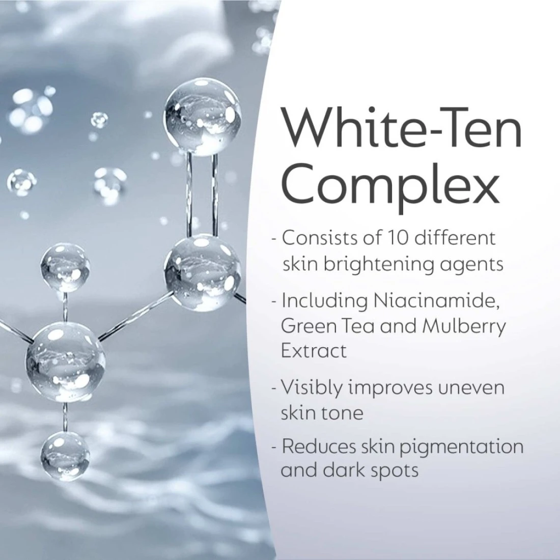 - يقلل أيضًا من البقع الداكنة والعيوب ويفتح لون البشرة
