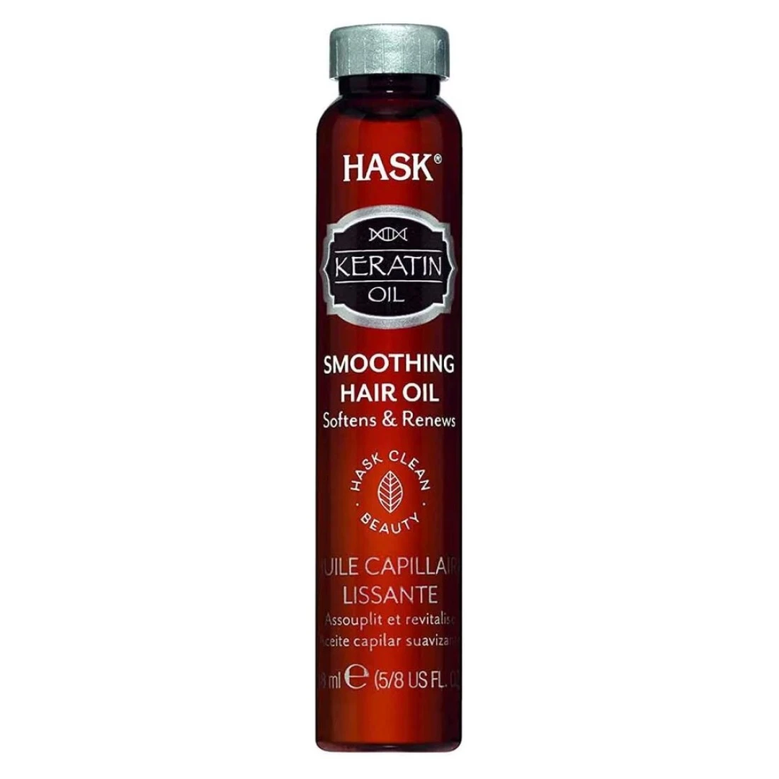 - إمنحي شعرك التالف والمعالج بالكيماويات تجربة تحول معجزة بإستخدام زيت شعر هاسك كيراتين بروتين سموذين.