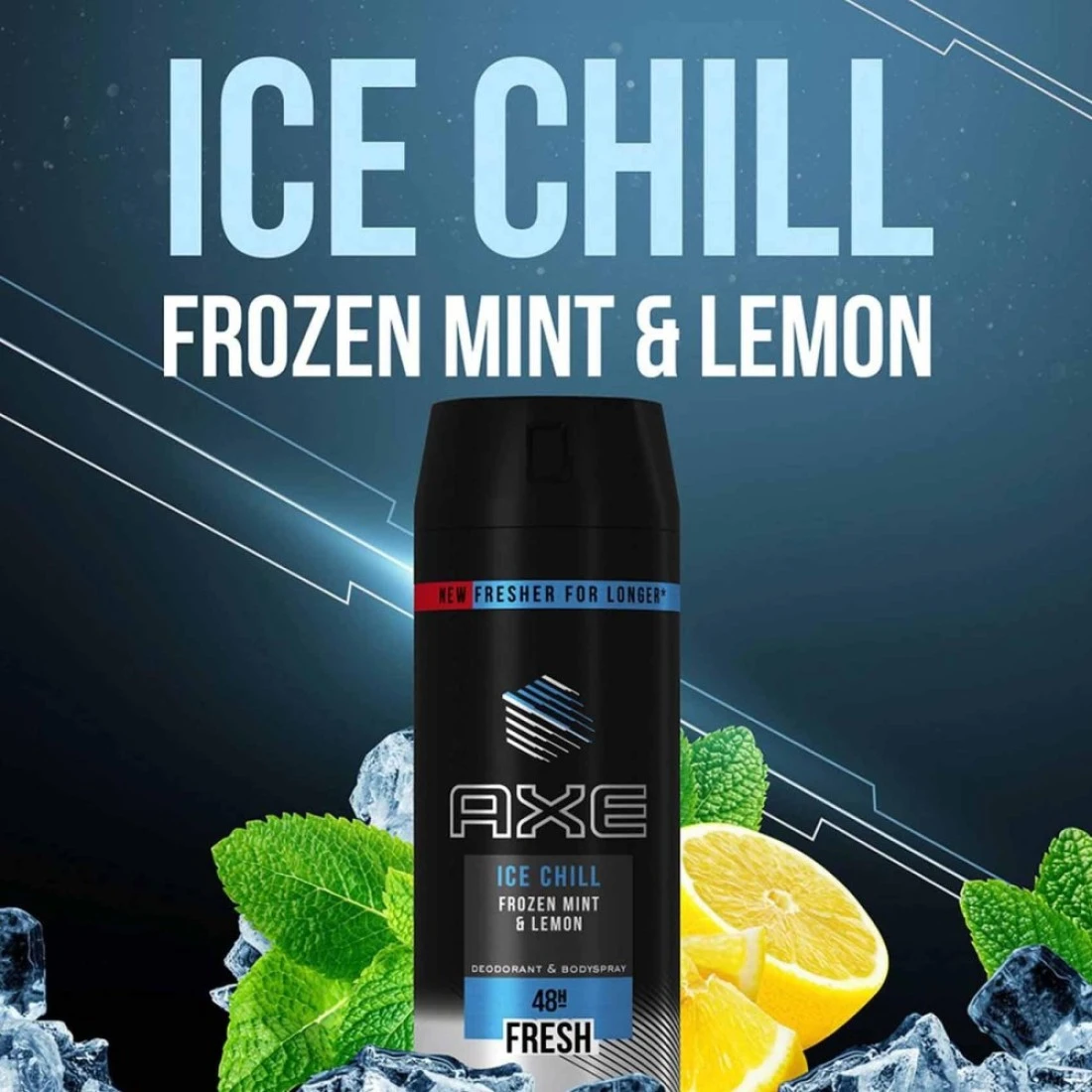 - سيبرد بخاخ الجسم من آكس آيس تشيل على الفور درجة حرارة جسمك بمقدار 6 درجات! غني بميرمية الباتشولي المجمدة و المكونات البحرية ، سيصبح هذا العطر المنعش من أكس بخاخ الجسم المفضل لك في الصيف