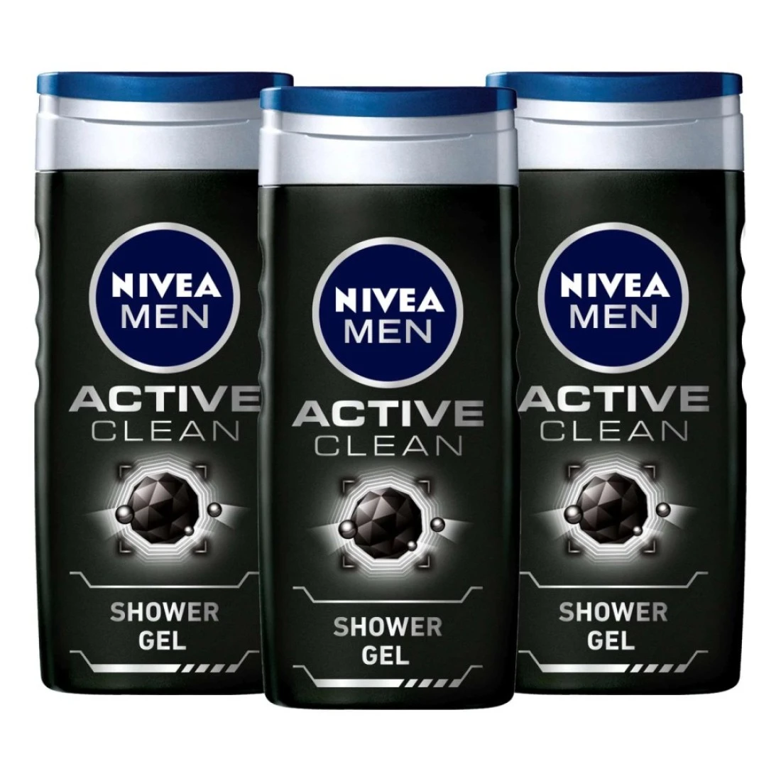 نيڤيا للرجال جل الاستحمام أكتيف كلين تشاركول،، برائحة خشبية، 250 مل عبوة تحتوي على ٣