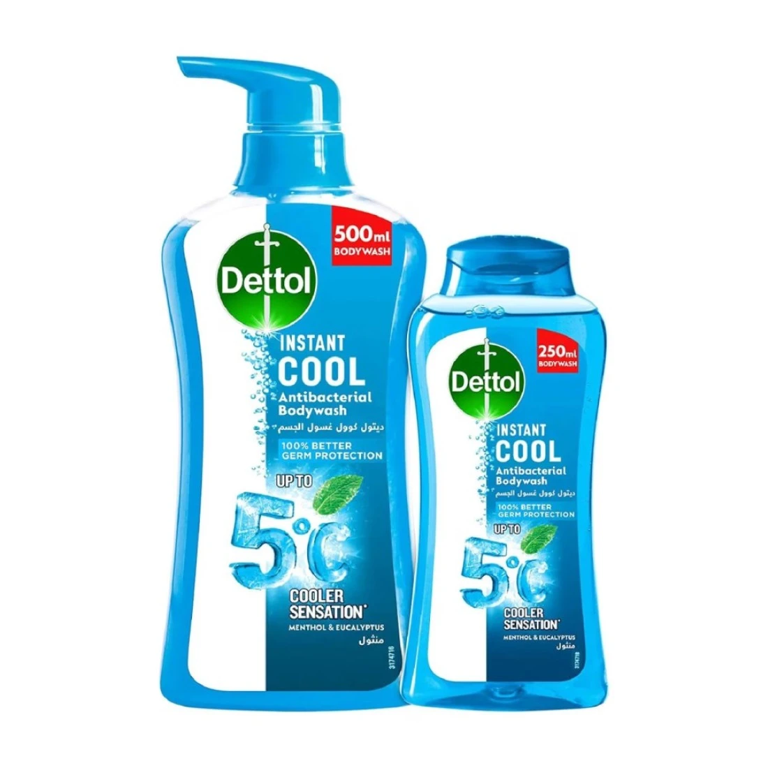 ديتول كول غسول جسم مضاد للبكتيريا بالنعناع والبرغموت -أزرق 500 ملل + 250 ملل.