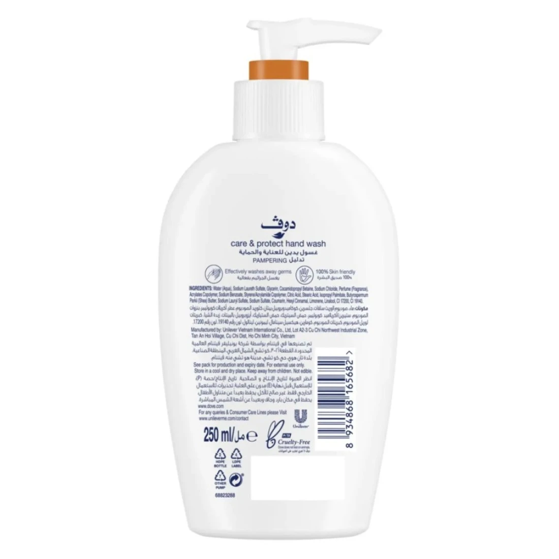دوف للعناية والحماية بزبدة الشيا والفانيليا غسول اليدين والحماية أبيض 250 ملل .
