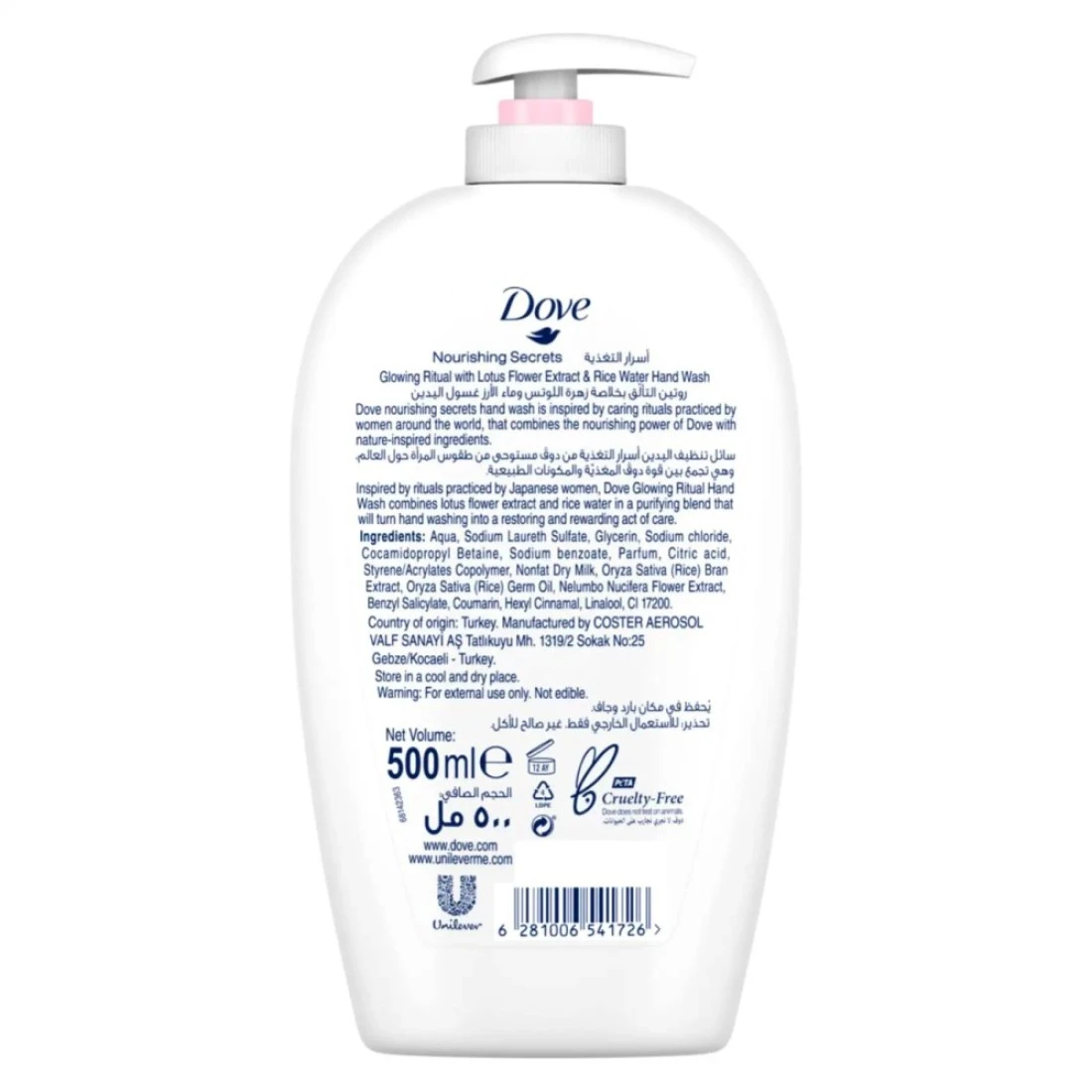دوف نوريشينغ سيكريتس غلووينغ ريتشوال هاند واش غسول يدين بخلاصة زهرة اللوتس وحليب الأرز 500 ملل