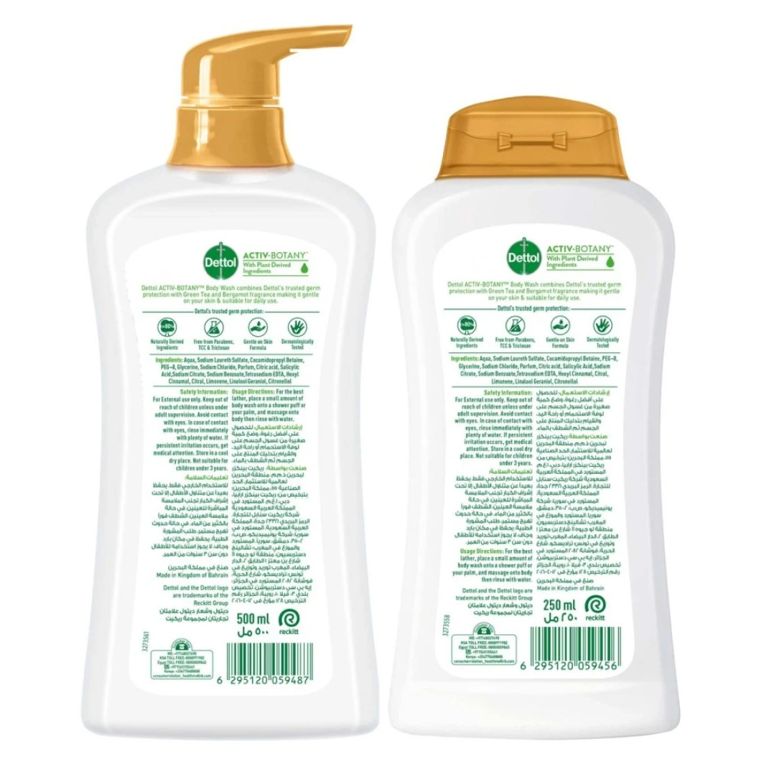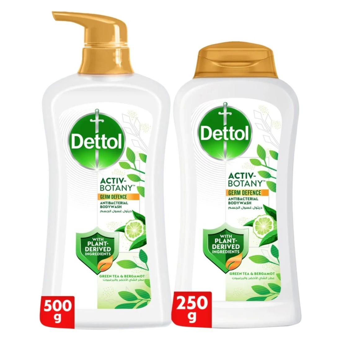 ديتول أكتيف بوتاني جل الاستحمام وغسول الجسم المضاد للبكتيريا بخلاصة الشاي الأخضر والبرغموت 500 ملل + 250 ملل