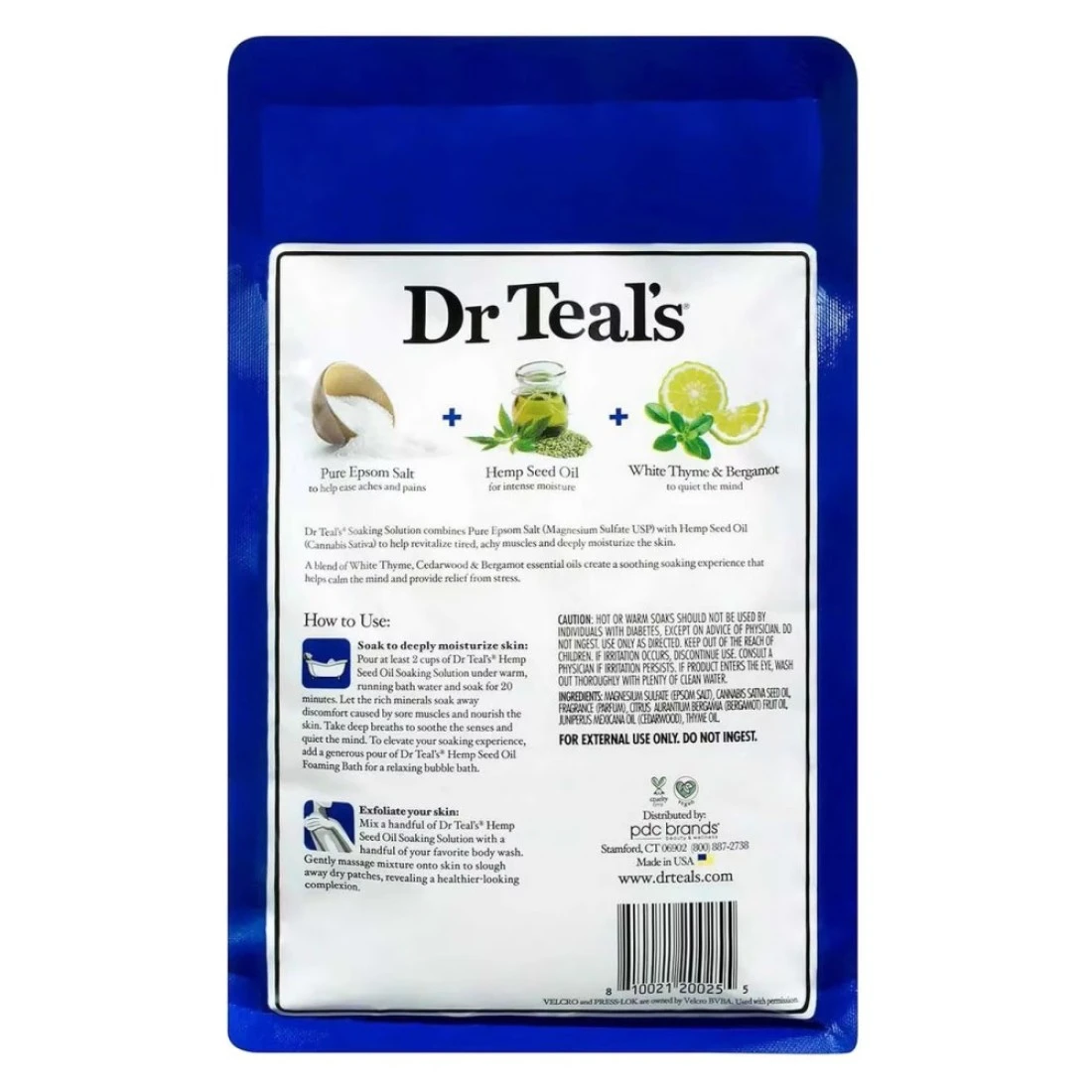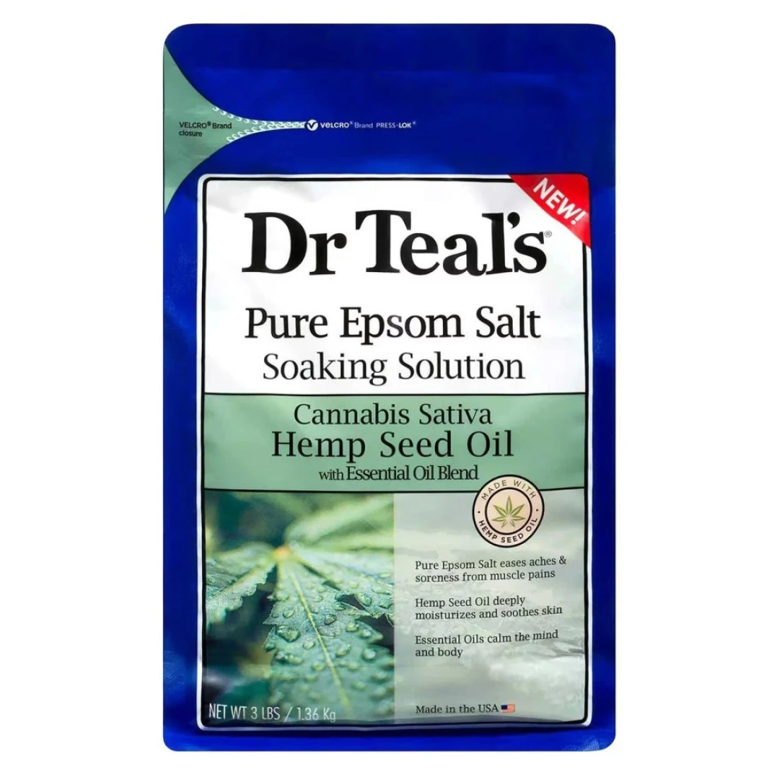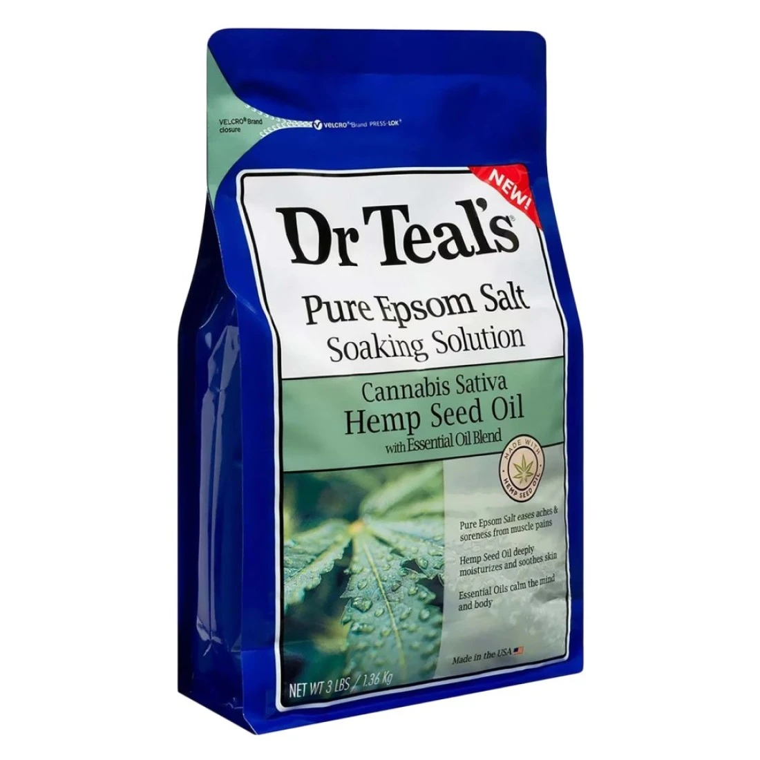 دكتور تيلز محلول نقع ملح إبسوم النقي بزيت بذور القنب شفاف 1.36 كغ