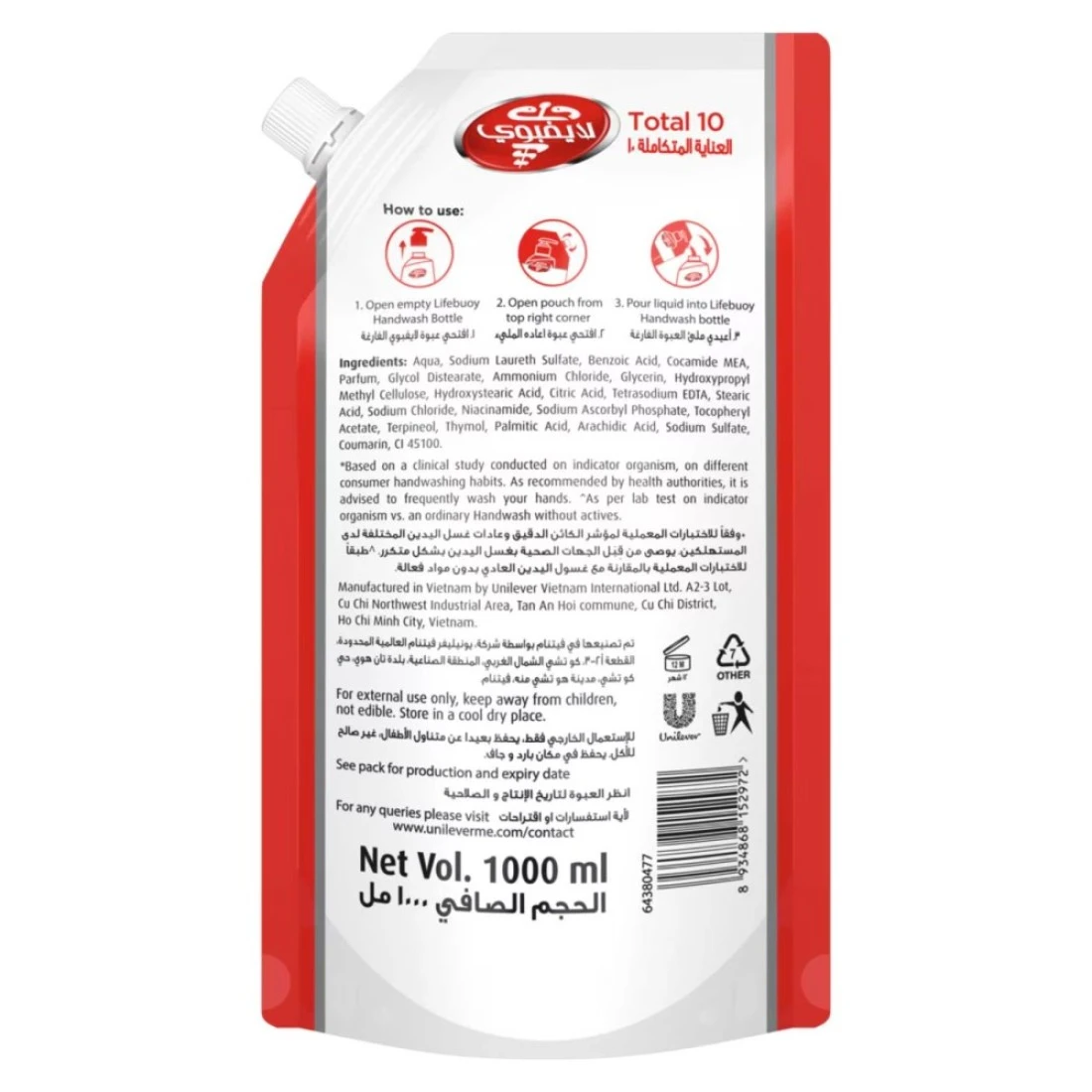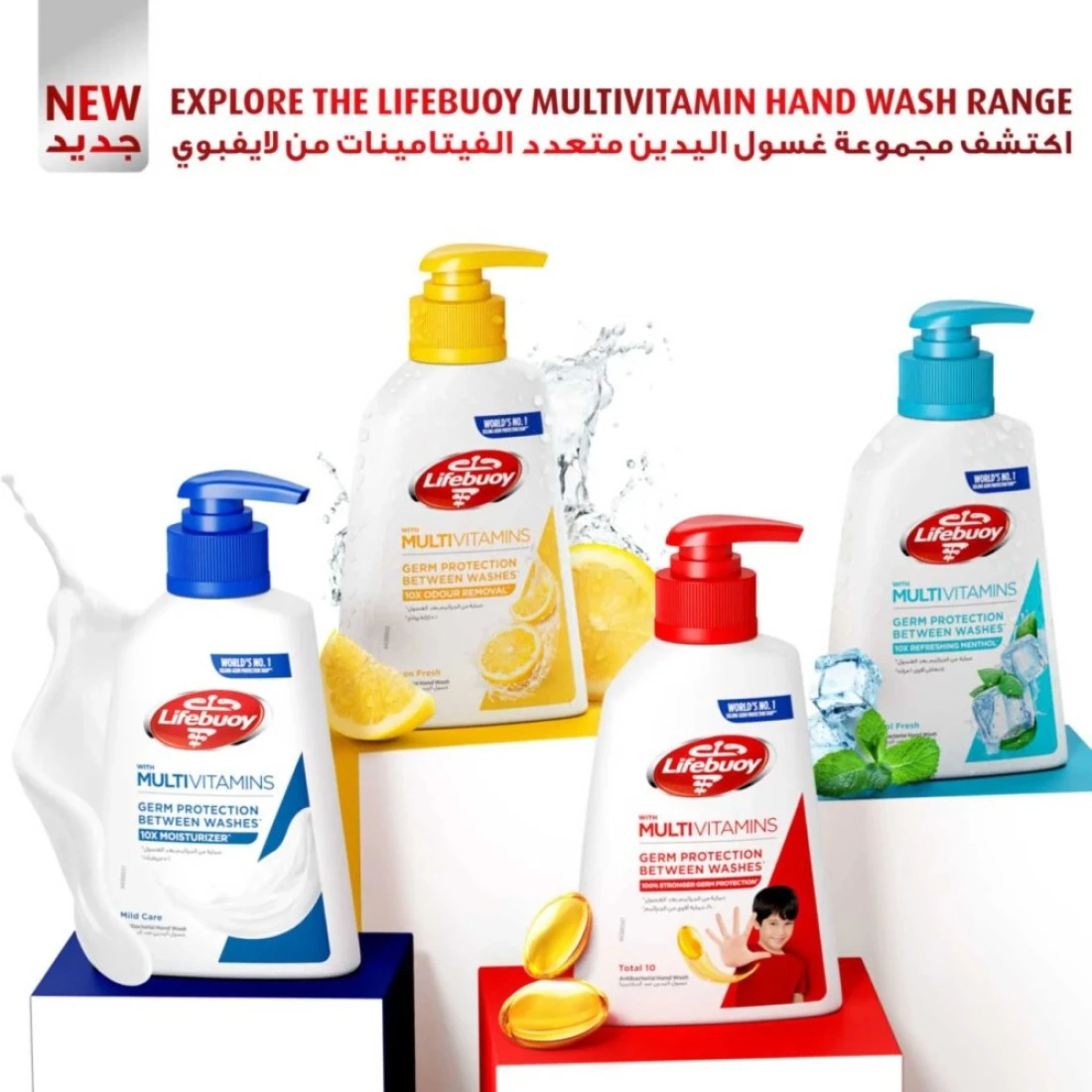 غسول اليدين لايف بوي يوفر حماية أقوى من الجراثيم بنسبة 100% في 10 ثوانٍ فقط، مكونًا درعًا قويًا ضد الجراثيم يدوم حتى 10 ساعات بين الغسلات. غني بـ 10 مرات مرطبات^ وفوائد كريم الحليب للحفاظ على ترطيب البشرة. تضمن هذه الصيغة المبتكرة حماية يديك بشكل مستمر، مما يوفر تنظيفًا عميقًا يتجاوز الغسلة. الصيغة المتقدمة متعددة الفيتامينات في غسول اليدين من لايف بوي تنشئ حاجزًا نشطًا على بشرتك، مما يوفر حماية ضد الجراثيم طوال اليوم. باعتبارها الخيار الأول عالميًا لحماية الجراثيم، يُثق بها من قبل العائلات حول العالم بسبب فعاليتها المثبتة. تم اختباره من قبل أطباء الجلدية ومعتمد بالكامل، هذا الغسول المضاد للبكتيريا آمن لجميع أنواع البشرة. لا يقتصر دوره على التنظيف بشكل جيد فحسب، بل يحافظ أيضًا على الحاجز الطبيعي للبشرة، مما يضمن أن تظل يديك نظيفة ومعتنى بها. اكتشف مجموعة لايف بوي الكاملة واختر من مجموعات لايف بوي للعناية المتكاملة 10، مايولد كير، ليمون فريش، أو كول فريش. كل نوع يوفر نفس مستوى الحماية المرتفع والتجربة المنعشة، مما يسهل عليك العثور على غسول اليد المثالي لاحتياجاتك. غسل اليدين في خمس لحظات رئيسية خلال اليوم (غسل اليدين بعد استخدام الحمام، قبل الإفطار، الغداء والعشاء، وأثناء الاستحمام) باستخدام غسول اليدين المضاد للبكتيريا لايف بوي مايولد كير سيحافظ على حماية أطفالك من الجراثيم والأمراض ويجعل أيديهم رائحتها رائعة!* وفقًا لاختبار المعمل على الكائنات المؤشرة مقارنة بالصابون العادي بدون مواد فعالة^ يشير إلى مستخلص كريم الحليب مقابل الصيغة السابقة.