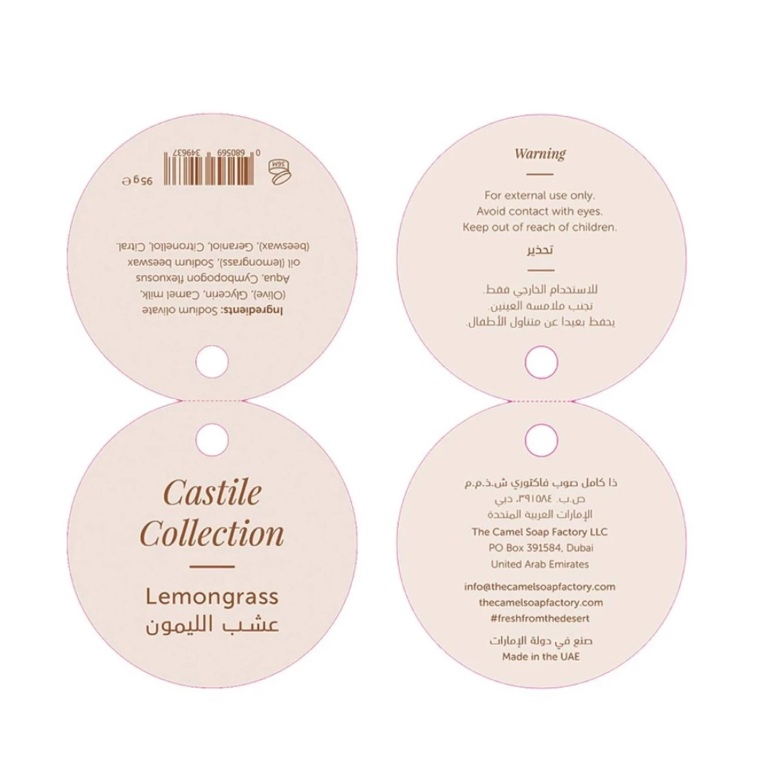 ingredients : زيت الزيتون ، حليب الإبل ، ماء ، زيت الليمون العطري ، شمع العسل.