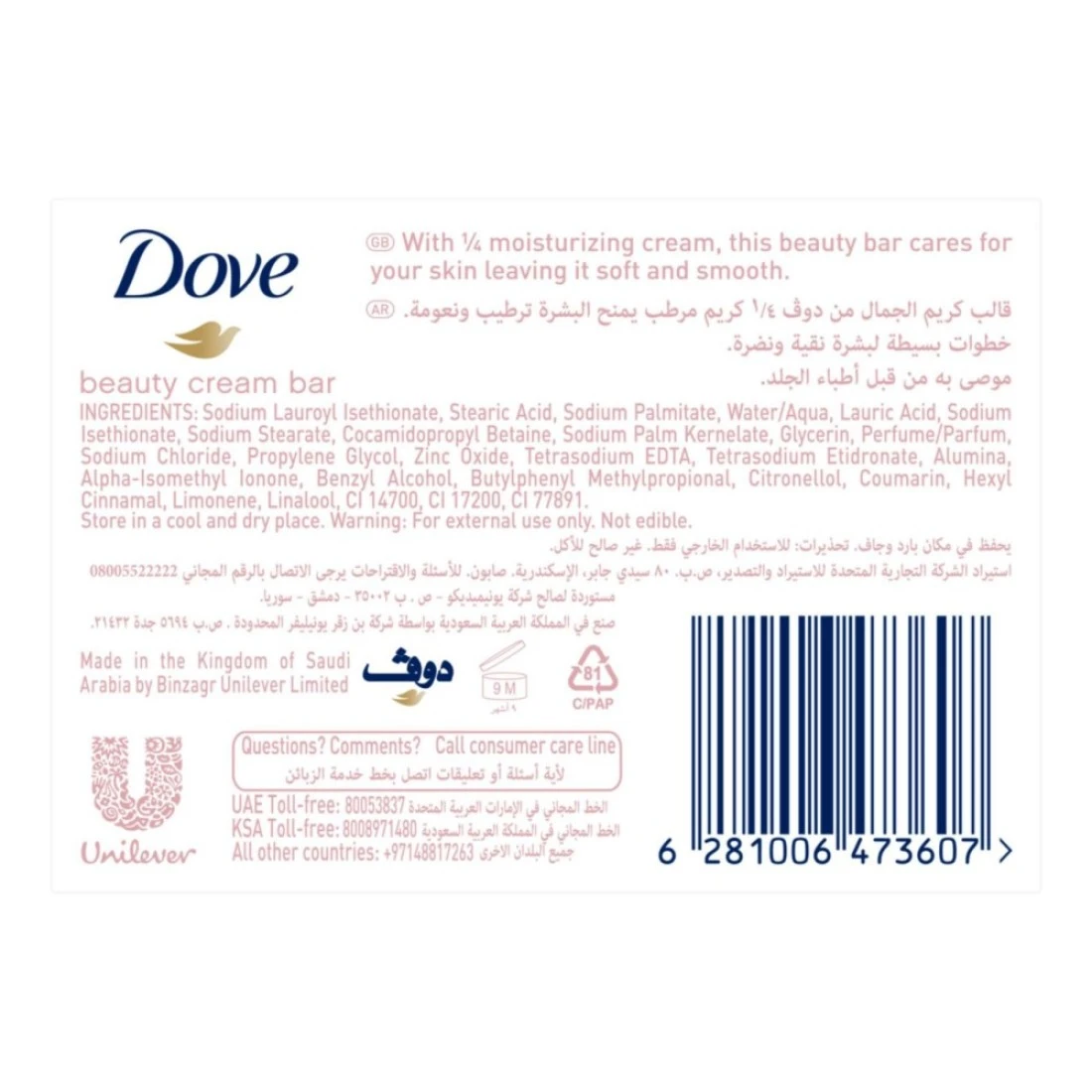 - دوف لا يجفف البشرة كما يفعل الصابون العادي ، بل يترك البشرة ناعمة ومتوهجة li>