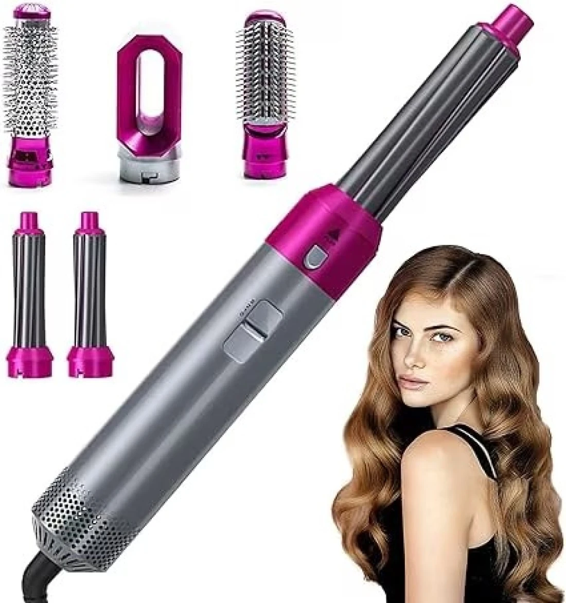 5 in 1 styling tool for drying, volumizing, straightening, and curling.