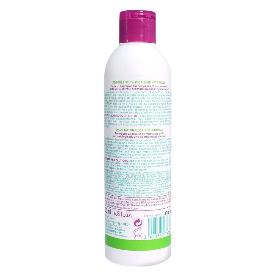 - يحتوي هذا الشامبو على زيوت أساسية عضوية من اللافندر والخزامى الناعم والإيلنغ وإبرة الراعي