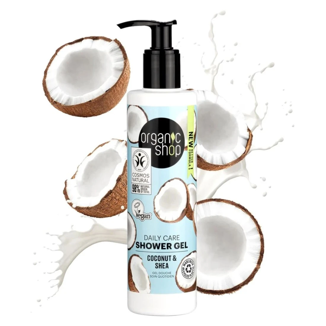 أورغانيك شوب جل إستحمام عضوي بجوز الهند والشيا للعناية اليومية - شفاف 280 ملل