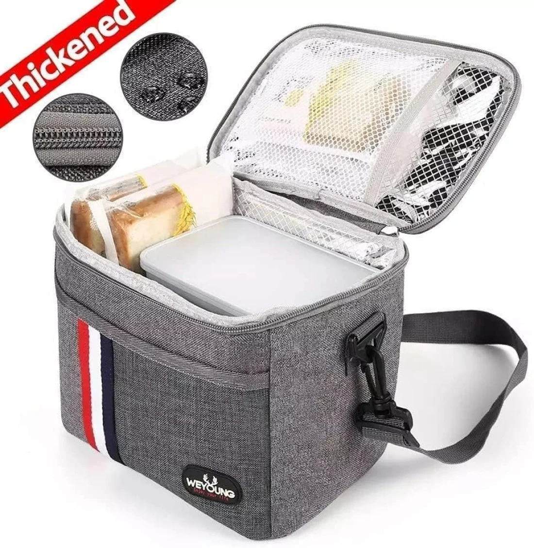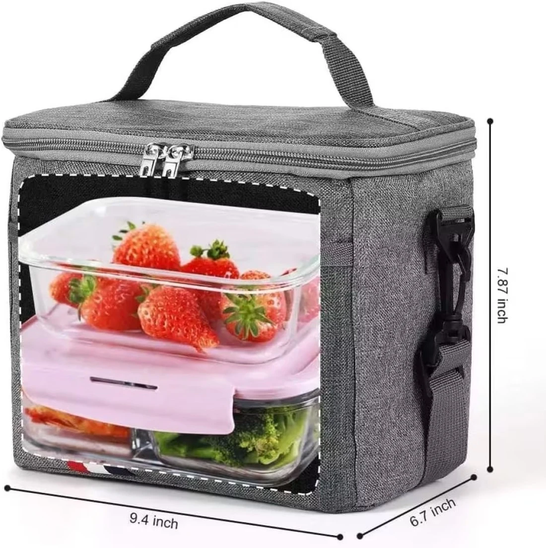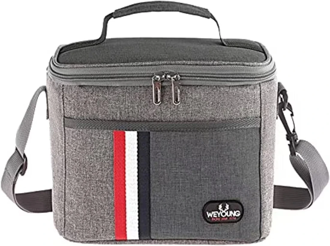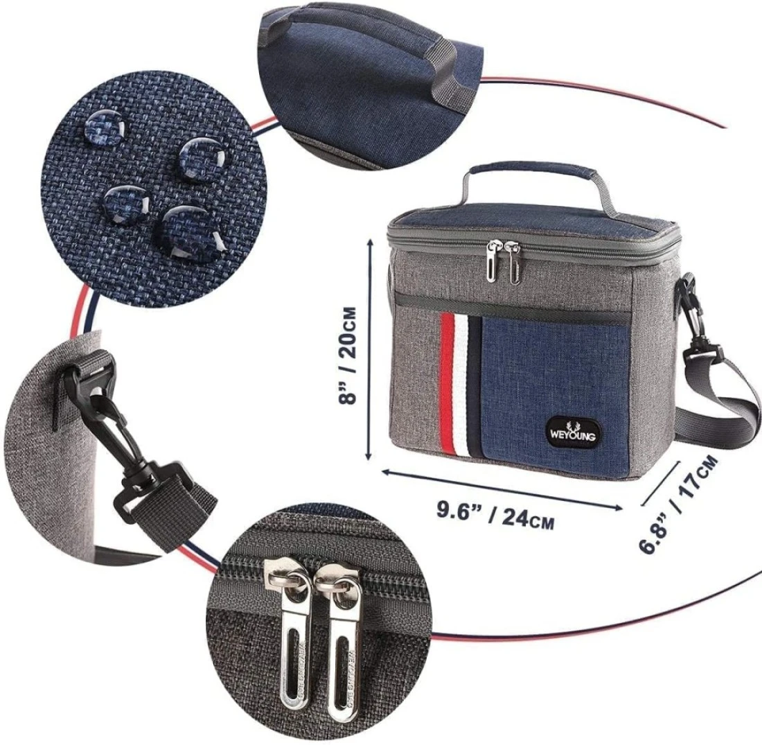 Multi Purpose: This lunch cooler can be used as a lunch box carrier, picnic bag, sundry bag, suitable for all age groups. Men, women, for school or work. Cooler Bag Size: 9.6 x 6.6 x 8 inches. This picnic cooler bag looks small but it has a large capacity, it could perfectly fit your lunch boxes, snacks, and even protein shake bottle.This is the honest proven feedback from our customers. High Quality Material: Durable Oxford cloth and nontoxic aluminum foil completely leak proof hot press interior (BPA FREE), perfect to pack your food and lunch bag containers.We have upgraded Insulation lined interior based on your needs. It will keep your food cold or warm for about 4 - 7 hours. Convenient Features: Light weight, padded handle, Mesh pocket inside to carry utensils, upgraded durable smooth zipper, Easy to clean, waterproof, Insulated, cooler or keep warm, convenient. One front pocket design organizes your napkin and personal stuff, such as your phone, bus card, tissue, etc.