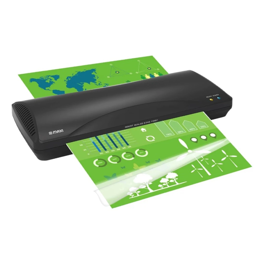 - تضمن ماكينة التغليف الحراري A4 من ماكسي أداءً إحترافيًا في عملية التغليف، مما تعتبر مثالية لمنزلك ومكاتبك الصغيرة