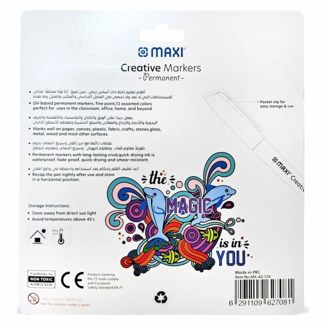 ماكسي كرييتف بوليت أقلام تحديد دائمةبطرف رصاصة MX-40-12A 12 قطعة -متعدد الألوان-