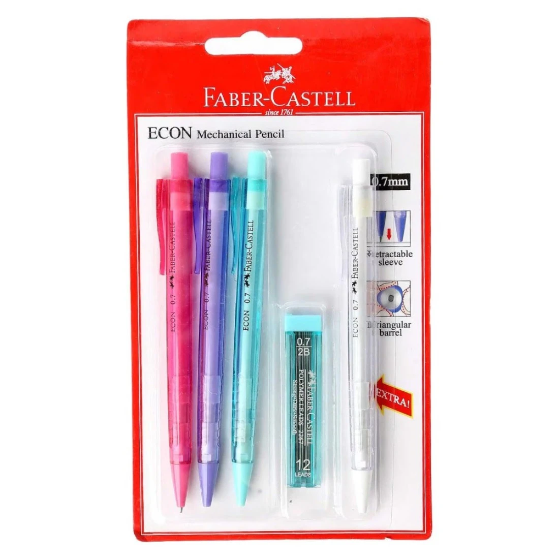 فايبر كاستل قلم رصاص ميكانيكي 4 قطع من إيكون مع 12 سنًا أيتش بي متعدد الألوان 0.7 ملم