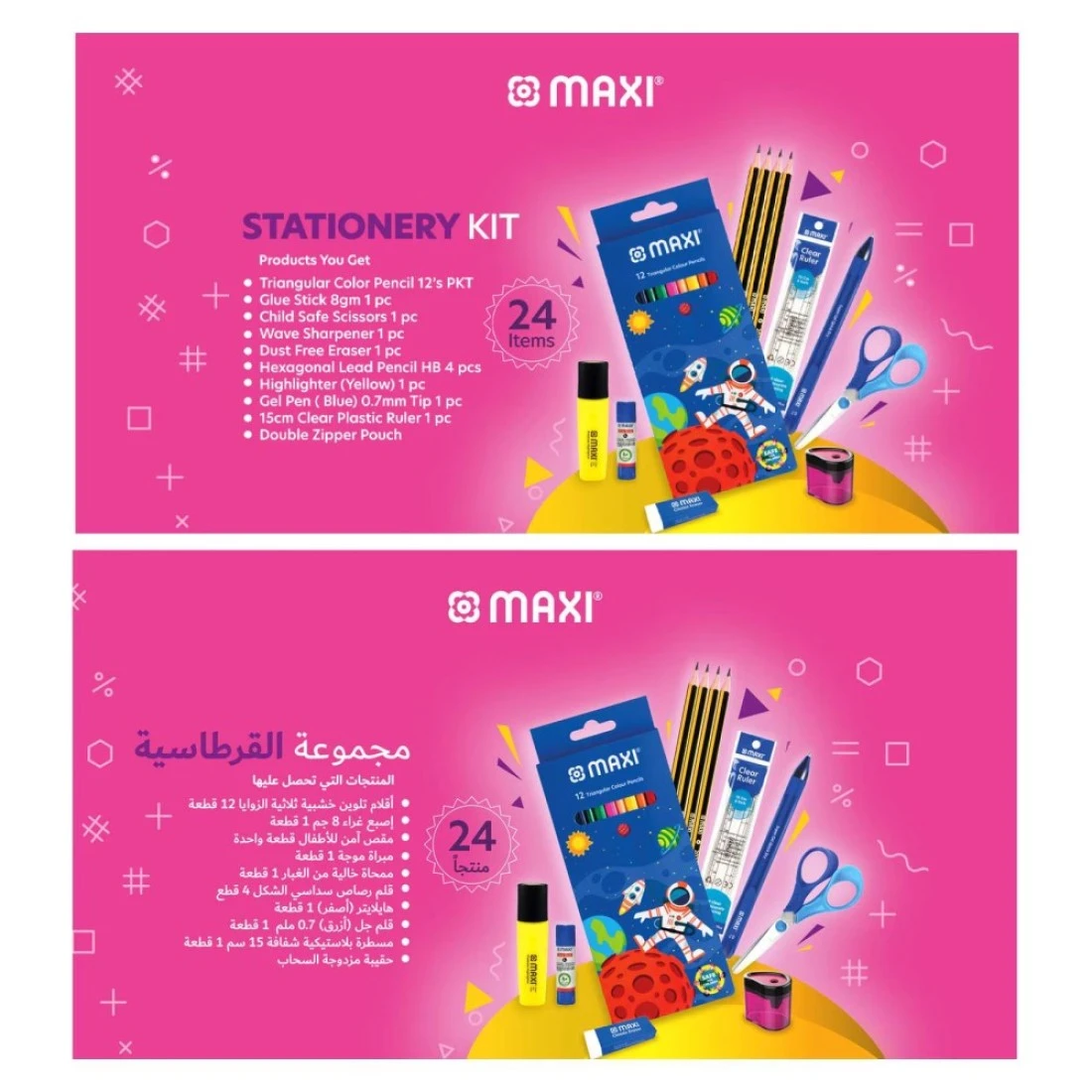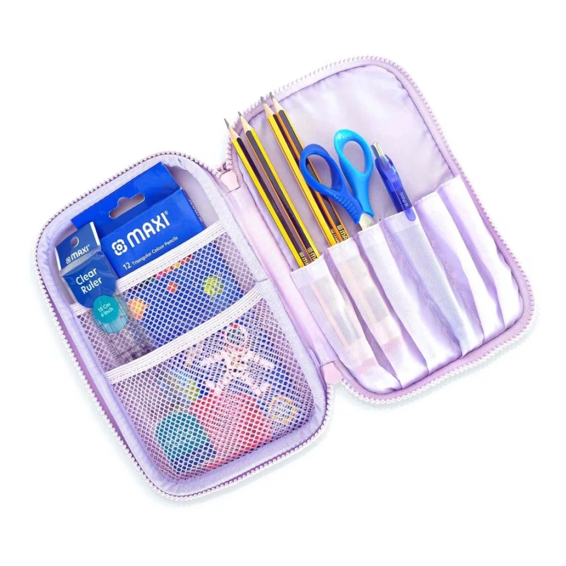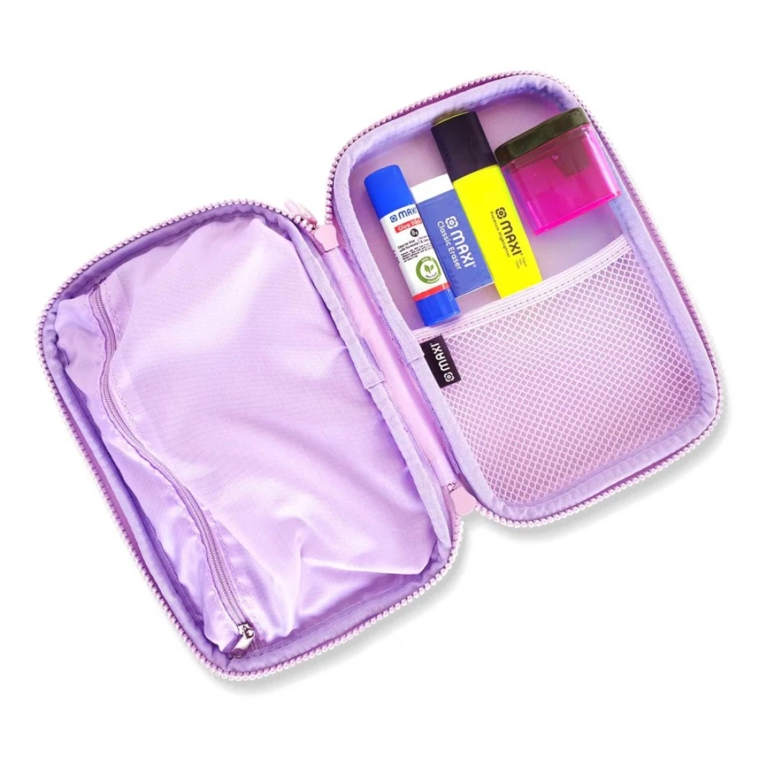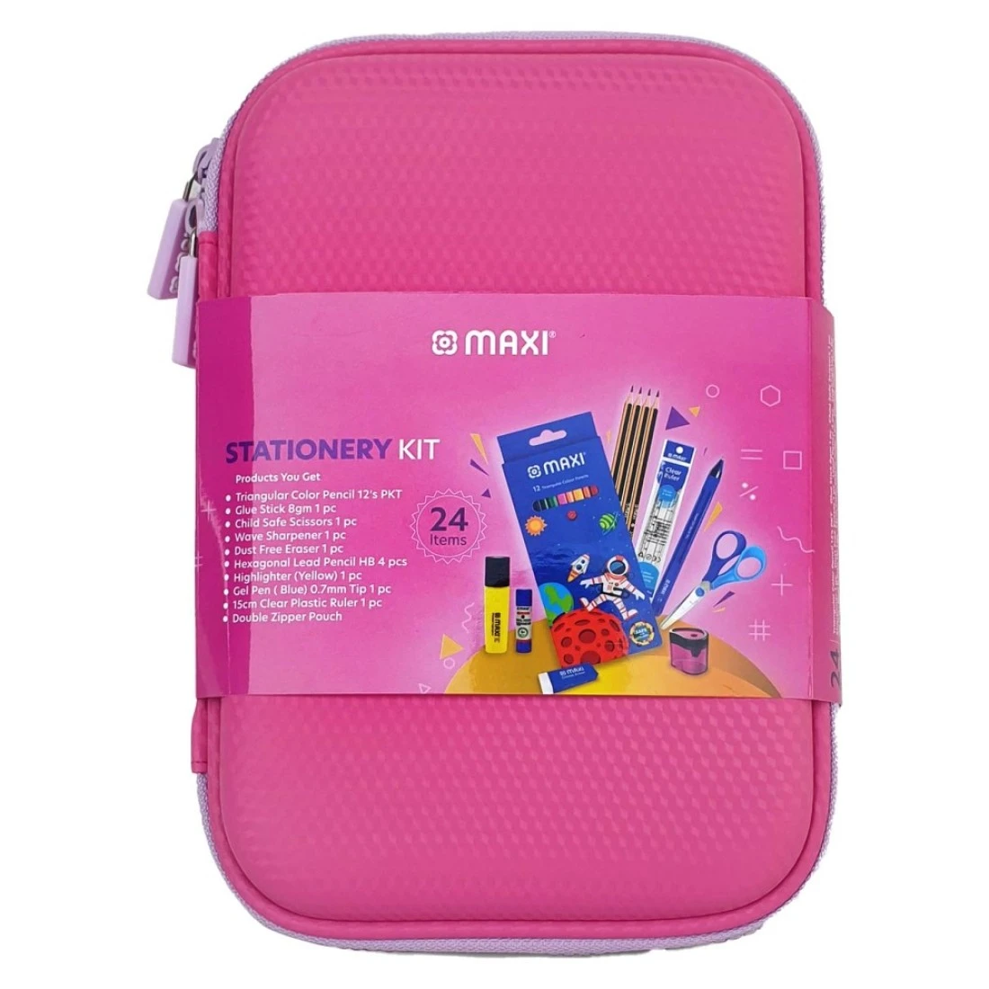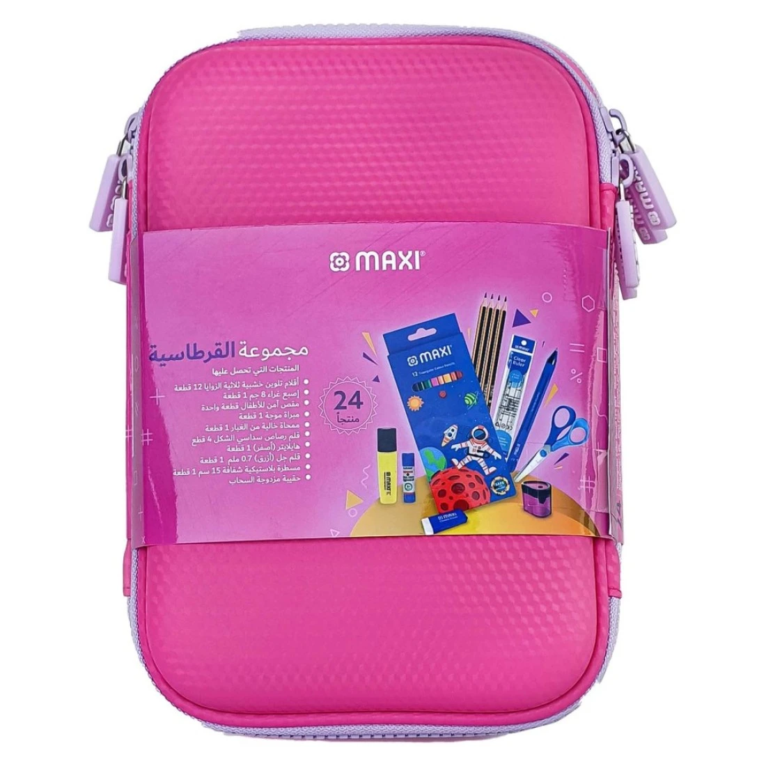 ماكسي مجموعة أدوات مكتبية بحافظة أقلام مزدوجة السحاب باللون الوردي