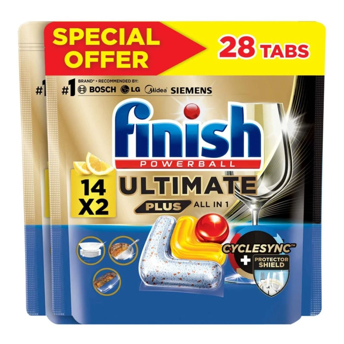 فينيش أولتيمايت بلس أقراص غسالة الأطباق برائحة الليمون 14 قرصًا، حزمة من 2