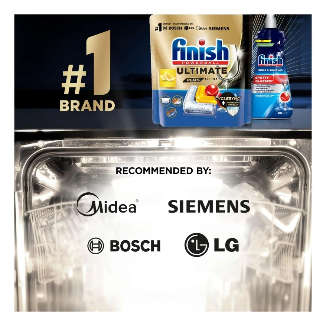 - تنظيف قوي لأطباق لامعة في كل مرة