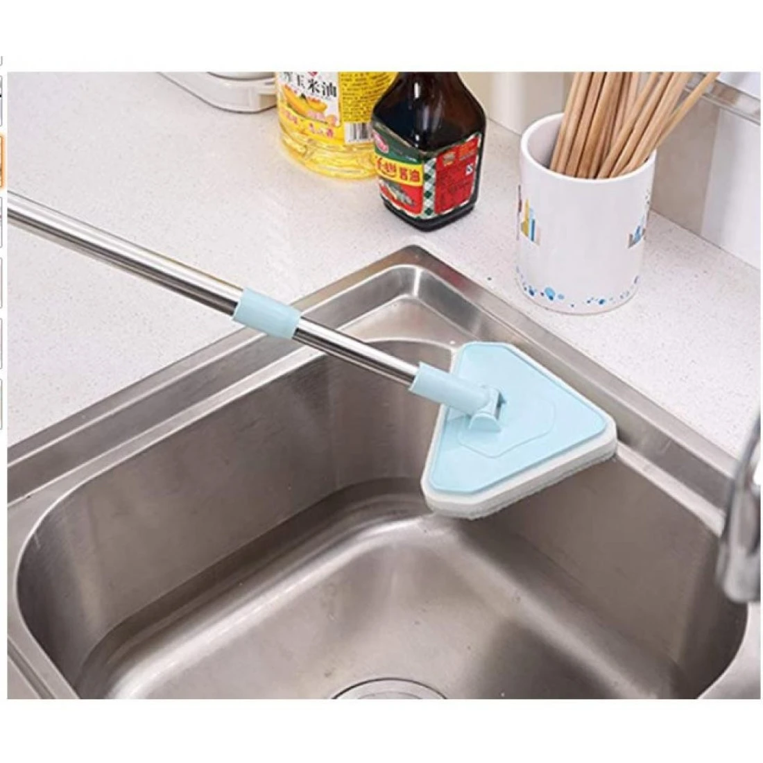 Aiwanto Long Handle Cleaning Brush Tub Bathroom Tile Scrub Brush Multifunctional Scrubber Triangle Sponge Extendable Brush with Good Grib (Blue)