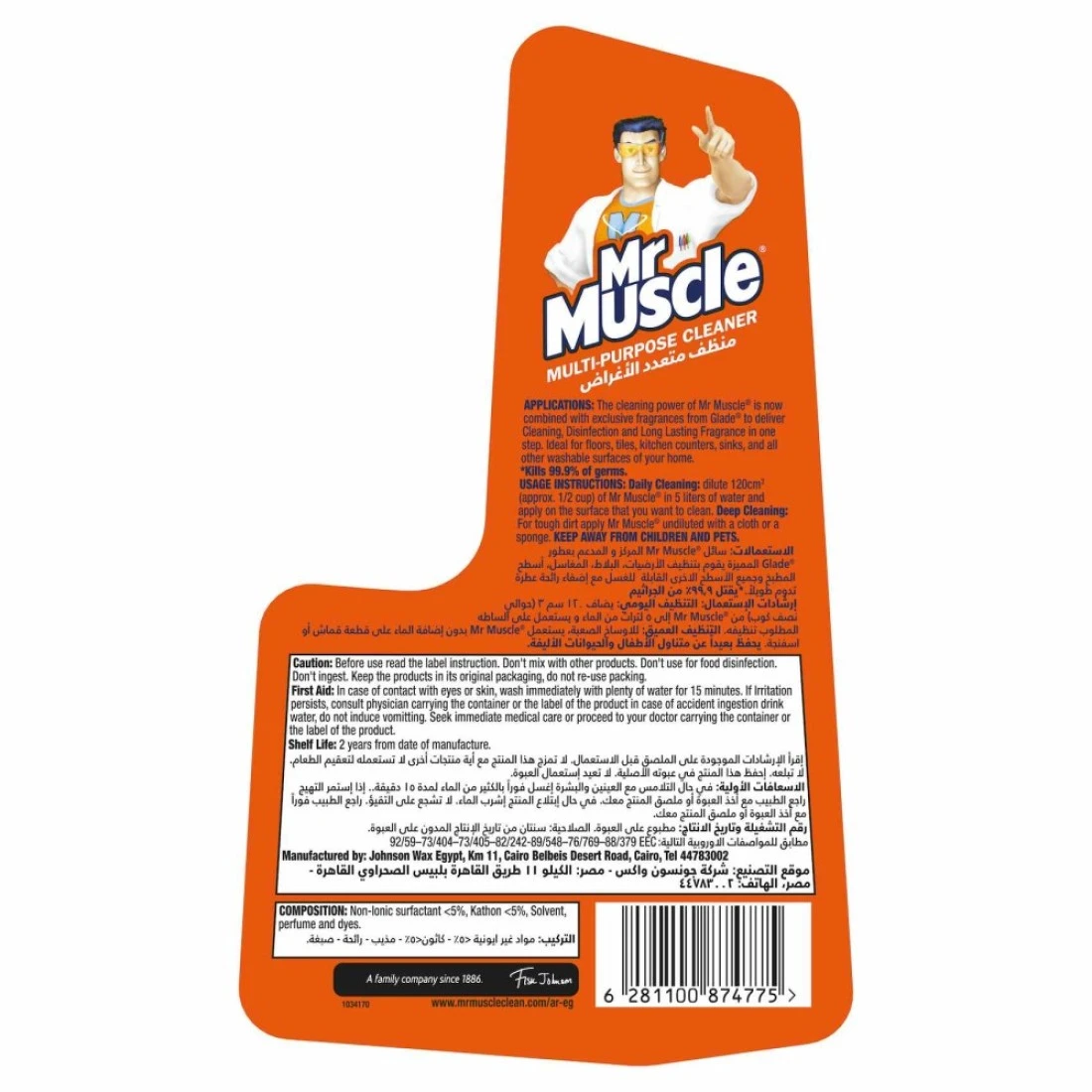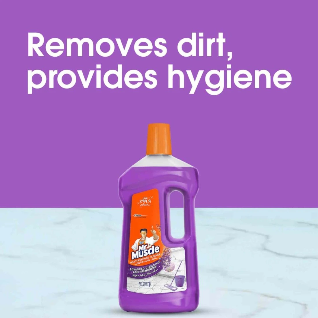 منظف الأرضيات متعدد الاستعمالات من مستر ماسل يقدم لك تنظيفًا متقدمًا وانتعاشًا طويل الأمد مع عطر زهري حصري من غلاد. يقضي على 99.9% من الجراثيم المنزلية، كما يزيل أصعب الأوساخ والشحوم ويترك سطحًا خاليًا من الضباب والبقايا. يمكن استخدامه على معظم الأسطح الصلبة غير المسامية مثل الأرضيات، البلاط، منضدة المطبخ والحوض وجميع الأسطح القابلة للتنظيف في منزلك. منظف الأرضيات متعدد الاستخدامات من مستر ماسل هو الحل الأمثل لكافة أرجاء المنزل، حتى تتمكني من التنظيف بشكل أقل والقيام بالمزيد.