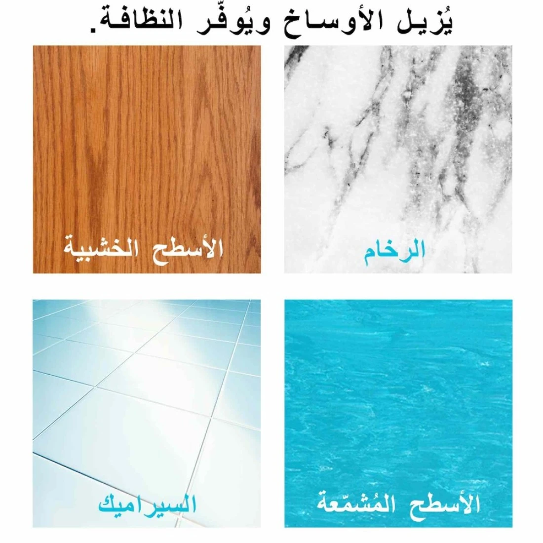 - يمكن استخدام المنتج على الأرضيات ،البلاط ،منضدة المطبخ ،الحوض وجميع الأسطح القابلة للتنظيف في منزلك
