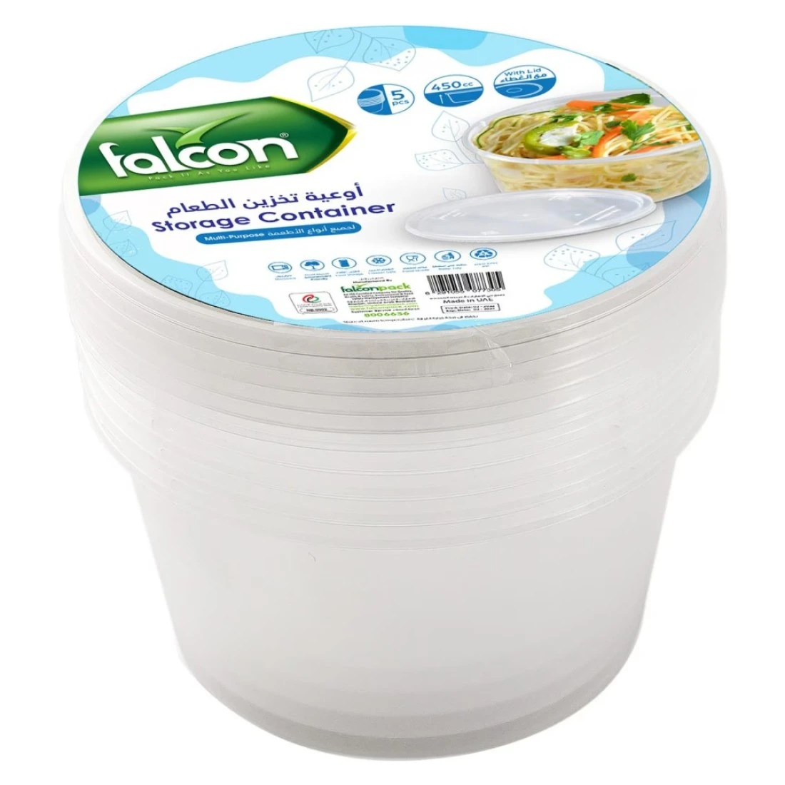 فالكون حاوية تخزين متعددة الأغراض مع غطاء - شفاف 450 ملل 5 قطع