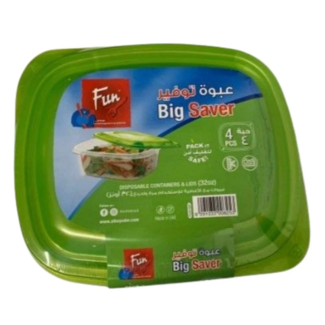 فن حاويات متعددة الأغراض مع غطاء - شفاف وأخضر 946 ملل 4 قطع