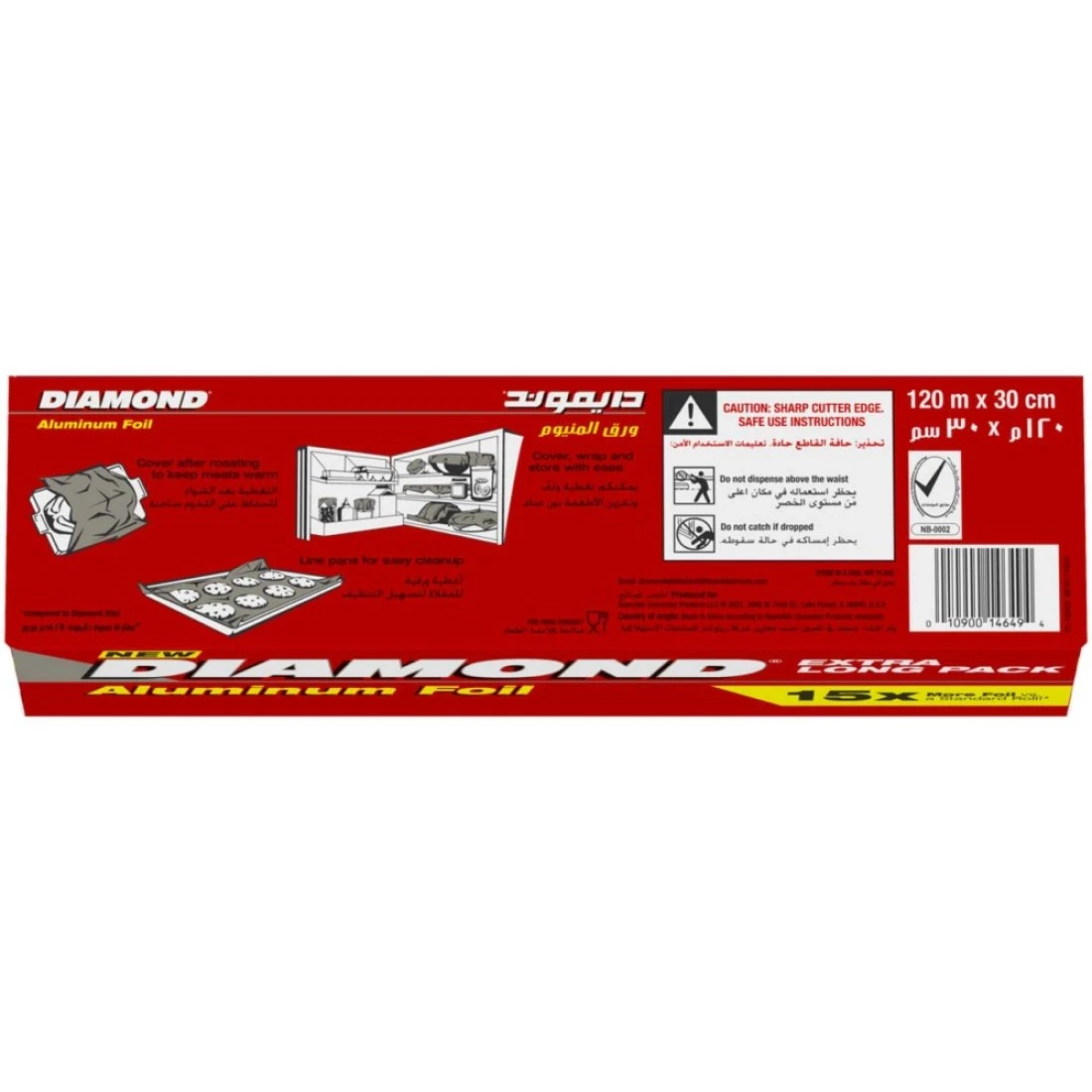رقائق الألومنيوم الماسية الطويلة جدا الفضية 120 متر هي رقائق معدنية عالية الجودة مثالية لجميع احتياجات الطهي والخبز الخاصة بك. إنه مصنوع من مادة الألومنيوم المتينة التي توفر احتفاظا ممتازا بالحرارة وتوزيعها. بفضل طوله الطويل جدا البالغ 120 مترا ، فإنه يوفر قيمة كبيرة مقابل المال ويضمن عدم نفاد رقائق البطاطس أبدا. يضيف اللون الفضي لمسة من الأناقة إلى مطبخك وهو مثالي أيضا لتغليف وتخزين بقايا الطعام. سواء كنت تشوي أو تخبز ، فإن ورق القصدير هذا ضروري للمطبخ.