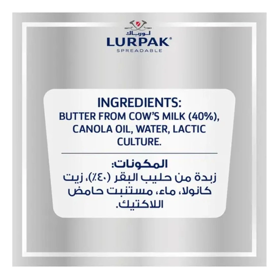 ingredients : زبدة من حليب البقر (40%)، زيت الكانولا، ماء، بادئ اللبن