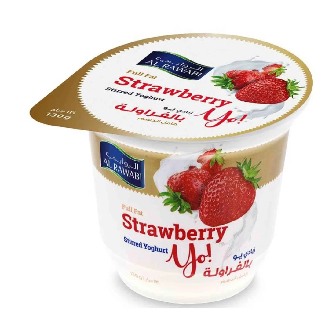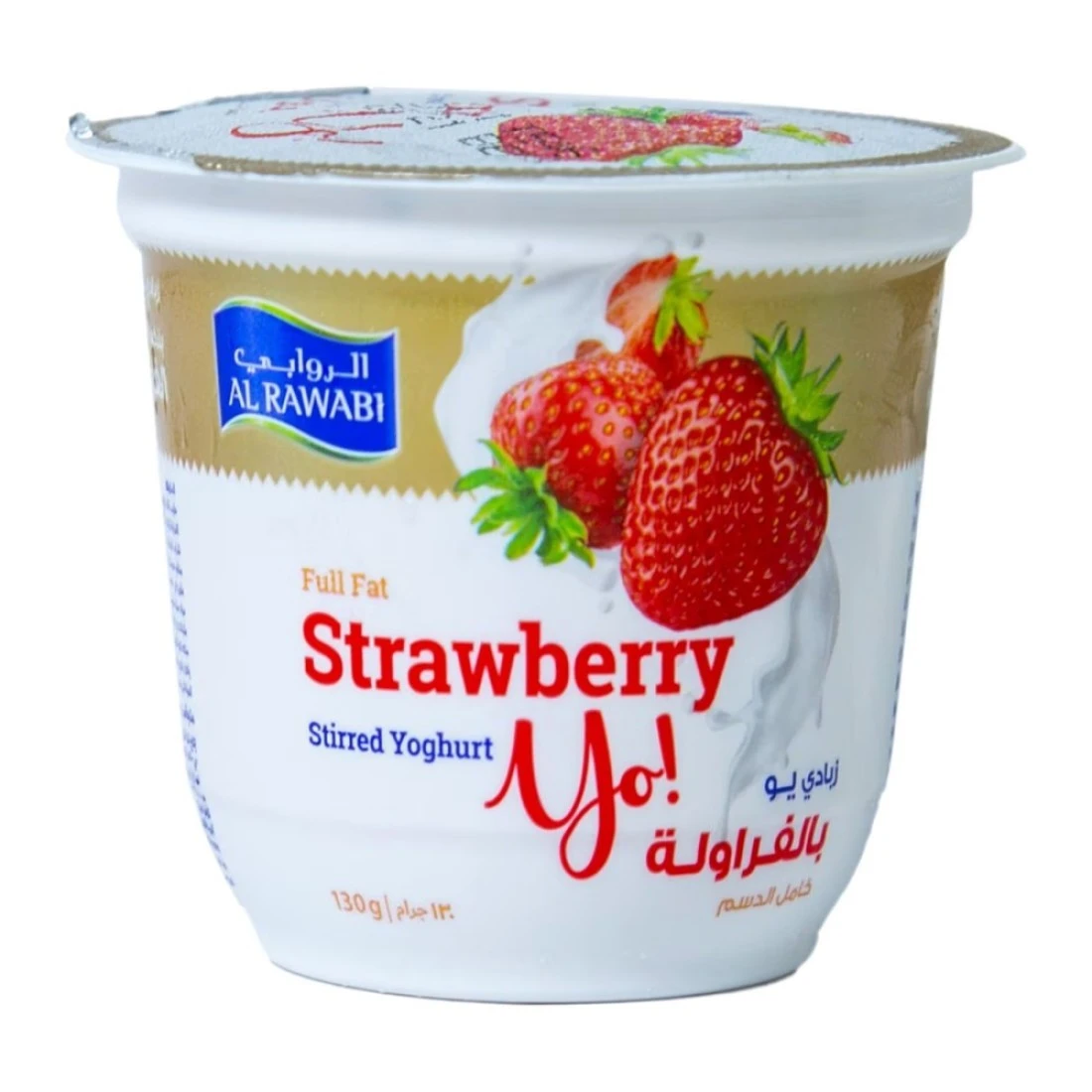 الروابي زبادي الفراولة مخفوق كامل الدسم 130 غرام