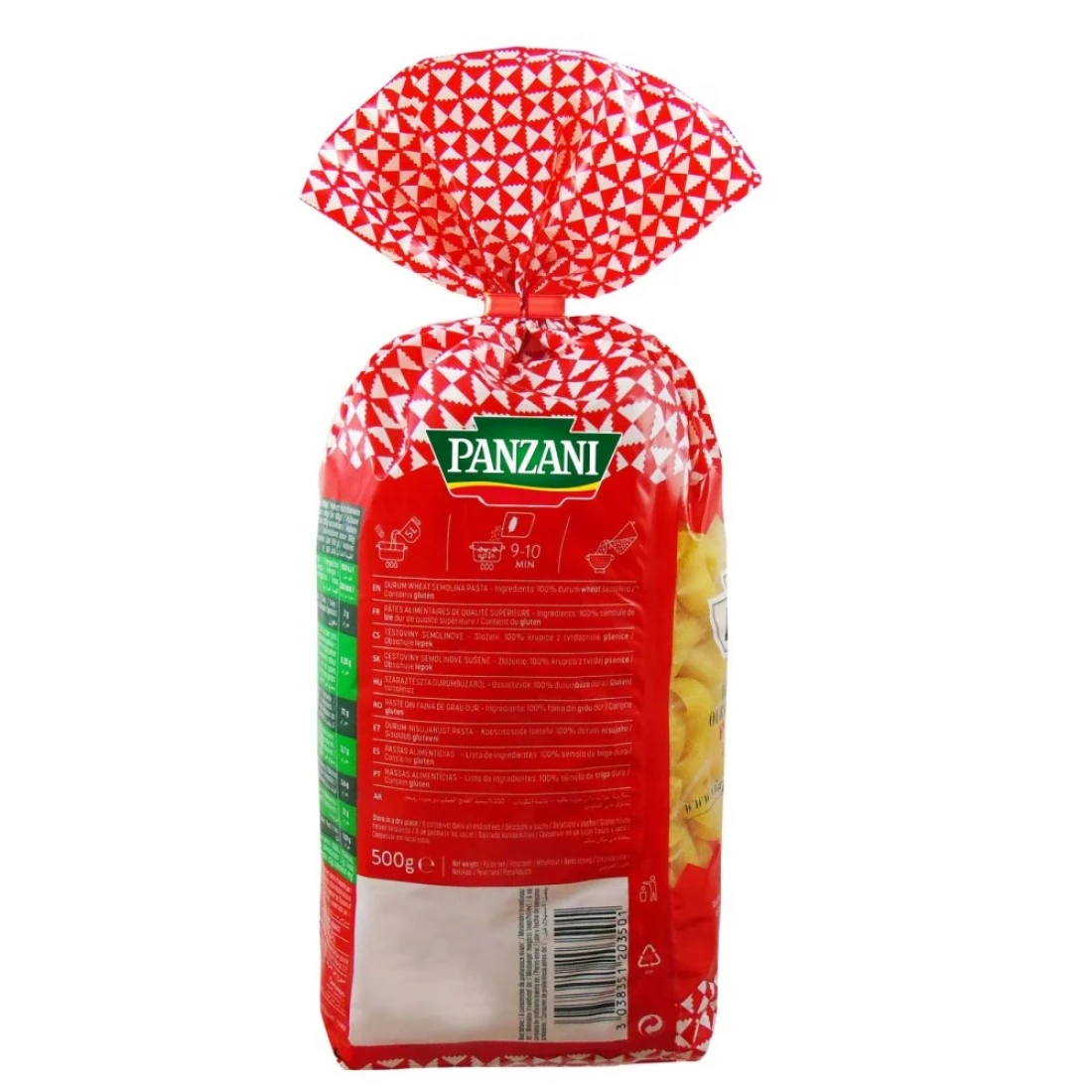 ingredients : 100٪ سميد قمح صلب عالي الجودة. قد تحتوي على آثار من البيض. يحتوي على غلوتين.