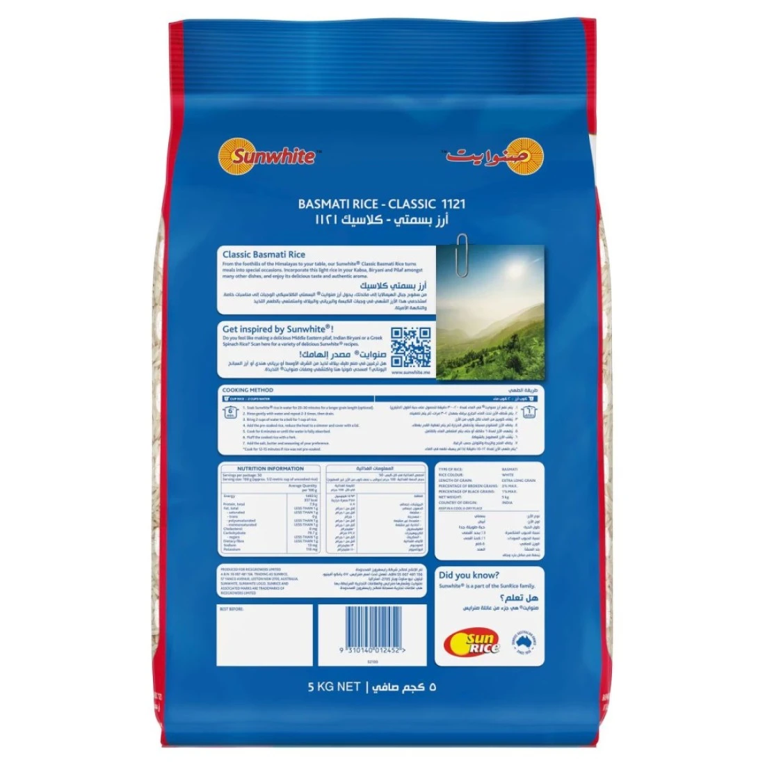 أرز بسمتي صنوايت كلاسيك 1121 هو أرز طويل الحبة عالي الجودة، معروف برائحته العطرية وملمسه الرقيق عند طهيه. هذه العبوة التي تزن 5 كغ مثالية للعائلات وعشاق الأرز الذين يقدرون المذاق الأصيل وجودة أرز بسمتي. يُستخرج أرز بسمتي صنوايت كلاسيك 1121 من السهول الخصبة في جبال الهيمالايا، وهو مثالي لمجموعة متنوعة من الأطباق، بما في ذلك البرياني والبيلاف والكاري. تطول حبيباته النحيلة بشكل جميل أثناء الطهي، مما يجعله إضافة رائعة لأي وجبة. استمتع بالنكهة الغنية والجودة الفائقة لأرز بسمتي صنوايت كلاسيك 1121 لتجربة طعام مرضية حقًا.
