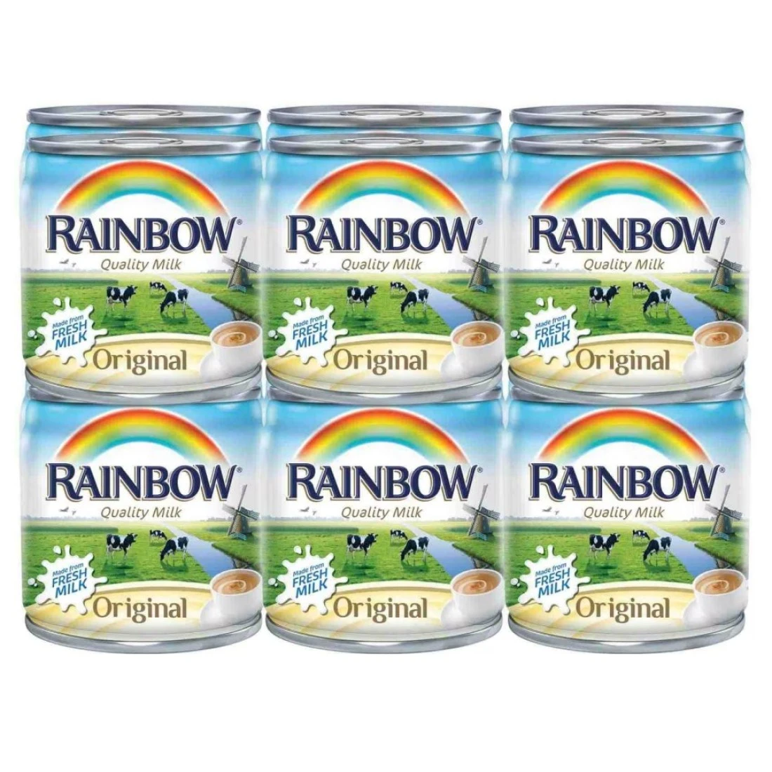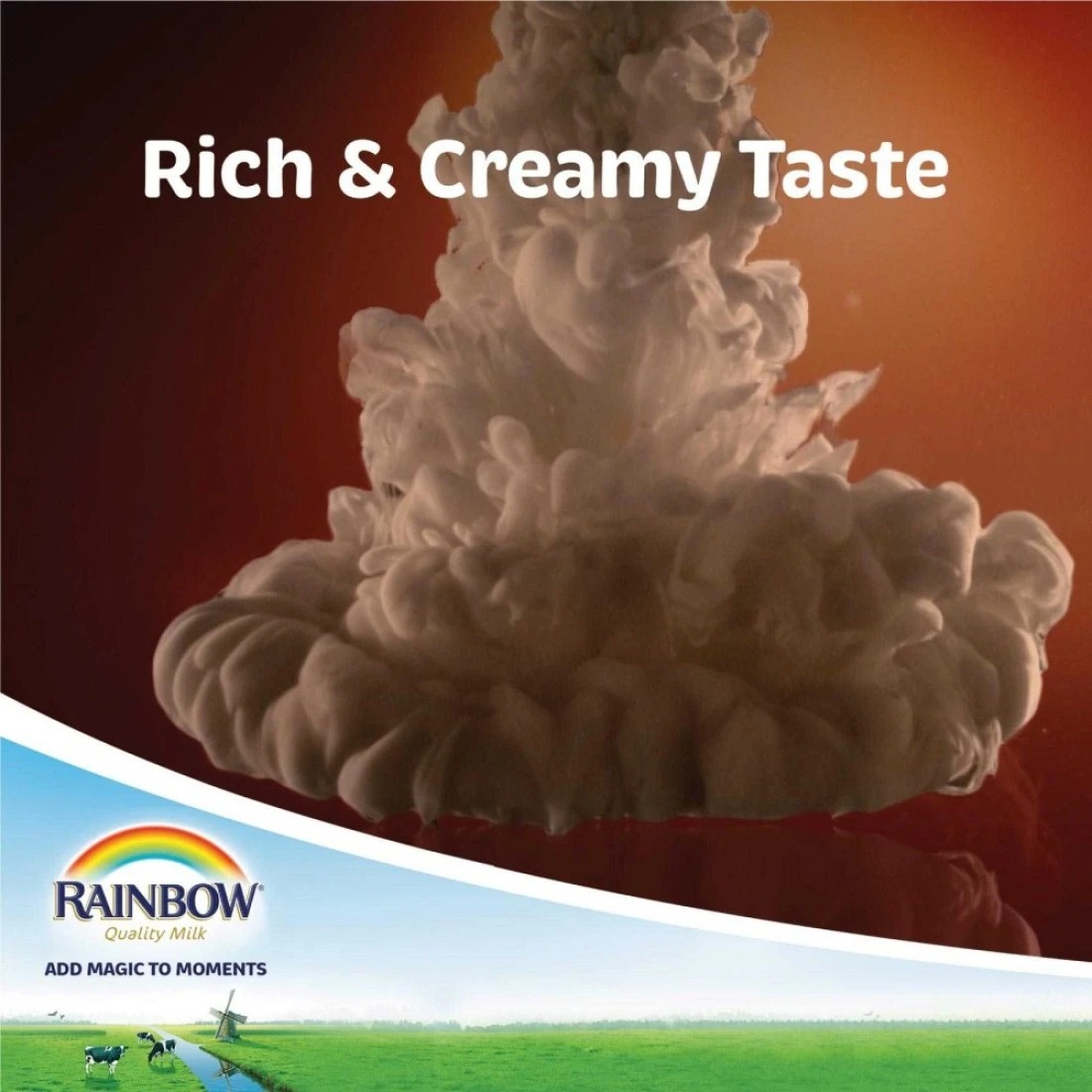 - من مزارعنا في أوروبا، يتم تحويل الحليب الطازج إلى حليب رينبو المبخر الغني والقشدي