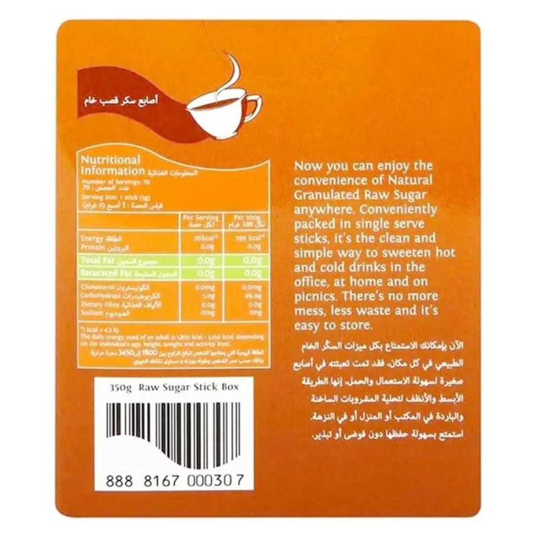 - توفير كبير: تحتوي هذه العبوة على أكياس 350 غرامًا، مما يوفر قيمة كبيرة لأولئك الذين يستمتعون بمذاق السكر الخام بانتظام