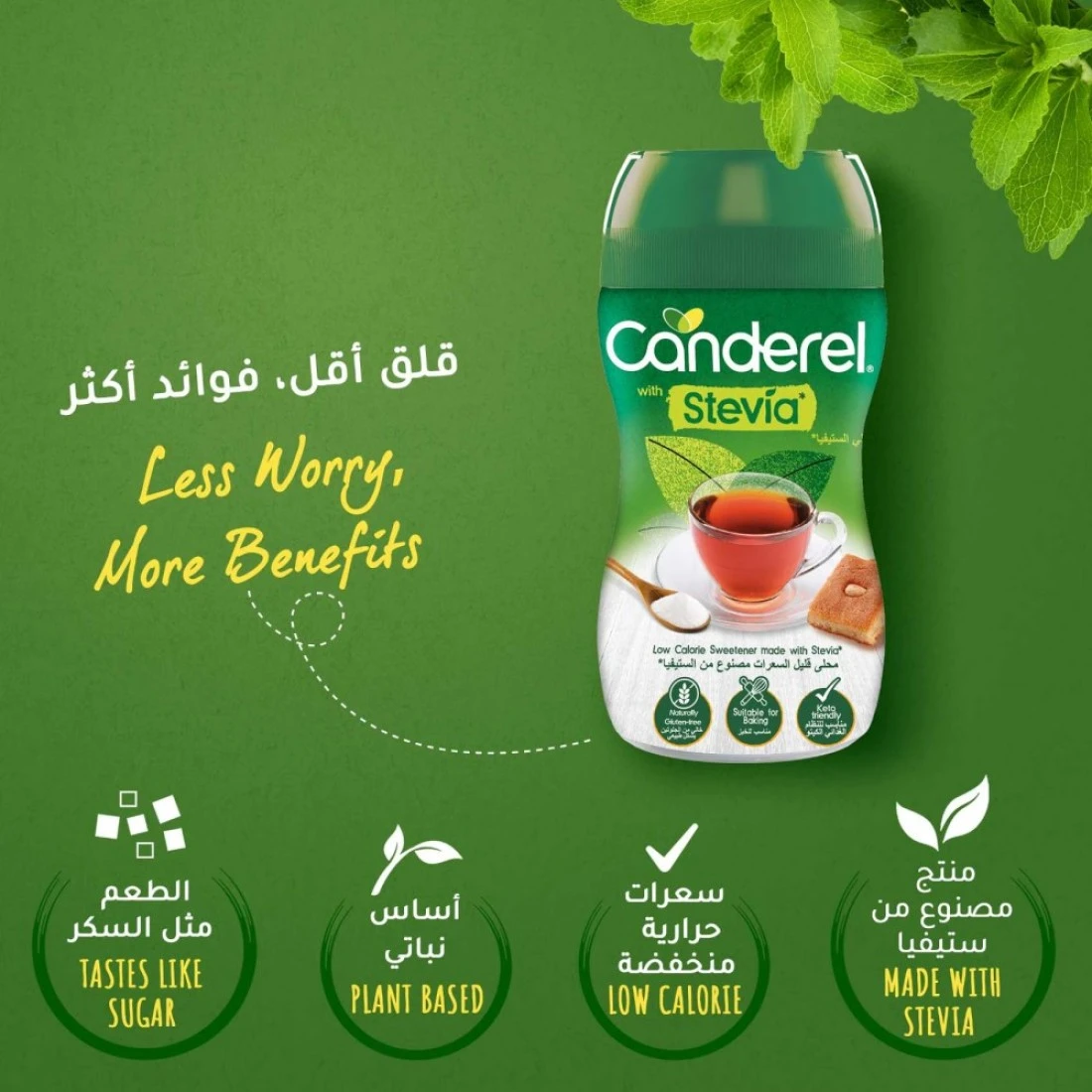 - مصنوع من ستيفيا للحصول على مذاق حلو طبيعي