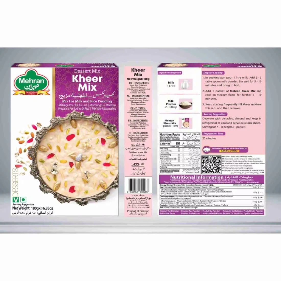 مهران كهير مكس مزيج المهلبية عبارة عن مزيج حلويات مناسب وسهل الإستخدام يسمح لك بتحضير كهير المهلبية اللذيذ والقشدي في أسرع وقت. تحتوي هذه الحزمة التي يبلغ وزنها 180 غرامًا على جميع المكونات الضرورية مثل سكر الأرز والمكسرات ممزوجة بشكل مثالي للحصول على كهير مهلبية غني ولذيذ. ما عليك سوى إتباع التعليمات الموجودة على الحزمة، أضف الحليب وأتركه ينضج حتى يتكاثف الخليط. سواء كان ذلك لمناسبة خاصة أو لمذاق حلو سريع، فإن مزيج مهران كهير المهلبية أمر لا بد منه لجميع عشاق كهير المهلبية.