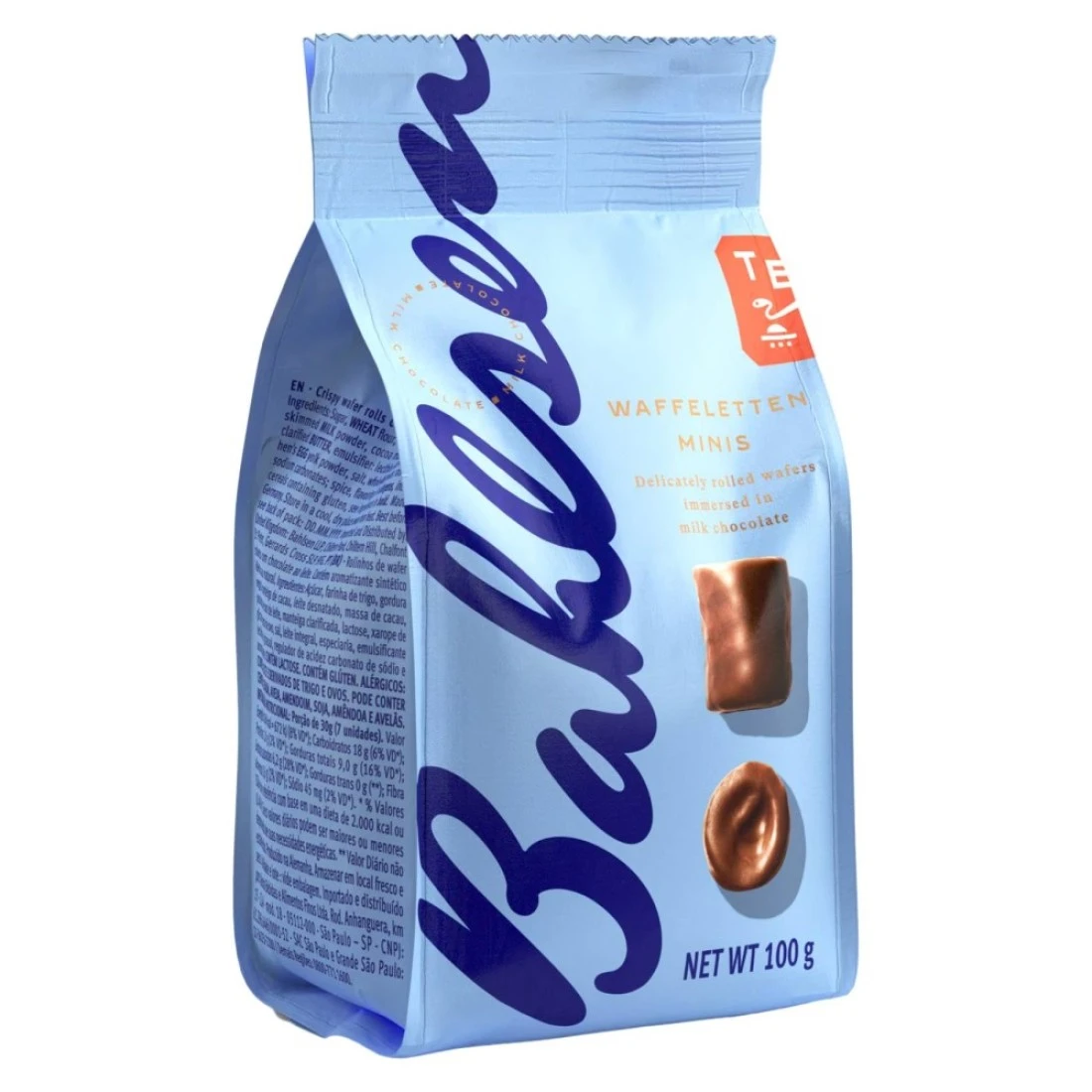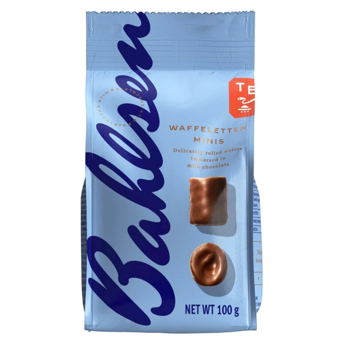باهلسن وافليتين لفائف مغطاة بشوكولاته الحليب بحجم صغير 100 غرام
